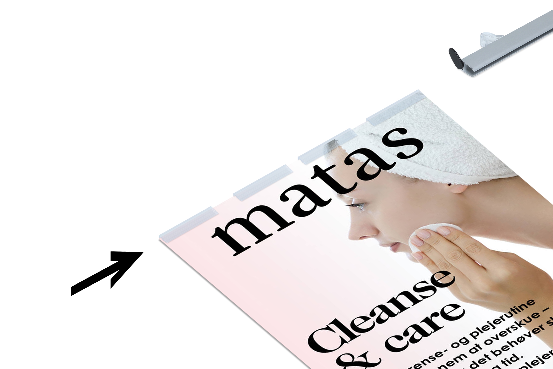 • Ved at dreje endekapperne kan du blot skubbe plakaten i