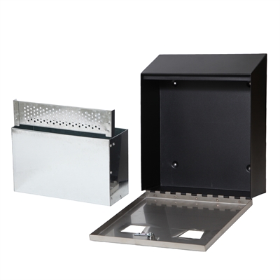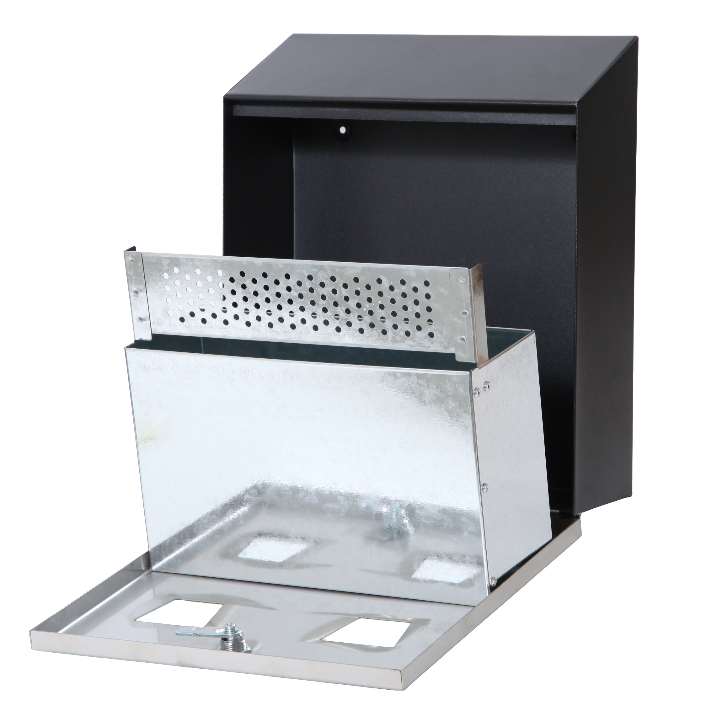 Et solidt og vejrbestandigt udendørs askebæger til vægmontering, fremstillet med en sort stålramme og en rustfri stålfront, som giver ekstra god holdbarhed og er en mere robust løsning end mange standardmodeller. Askebægeret har et stilrent udtryk med to huller med grill samt en låsbar front for sikker og nem tømning. Den galvaniserede inderbeholder sikrer en hygiejnisk og langtidsholdbar drift.