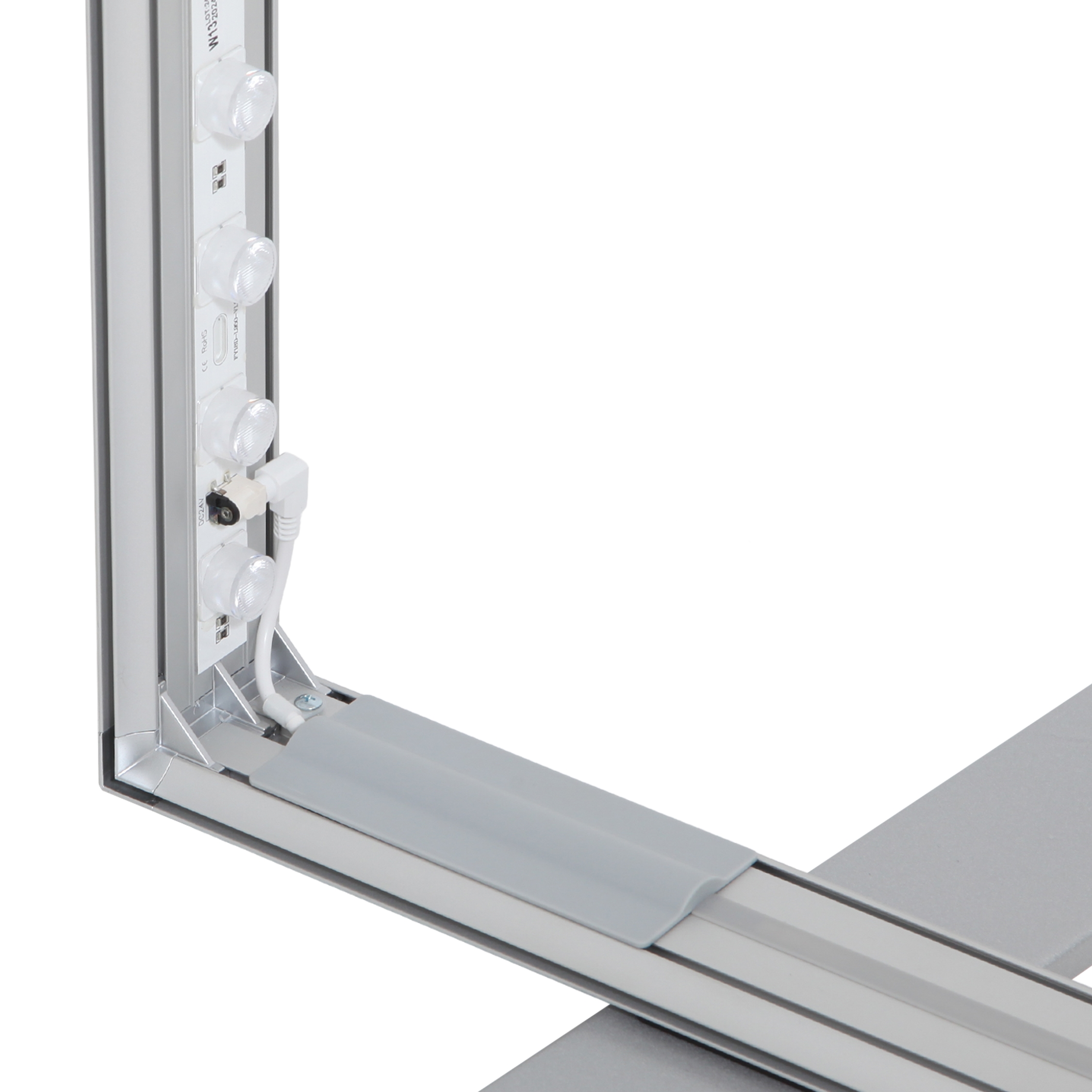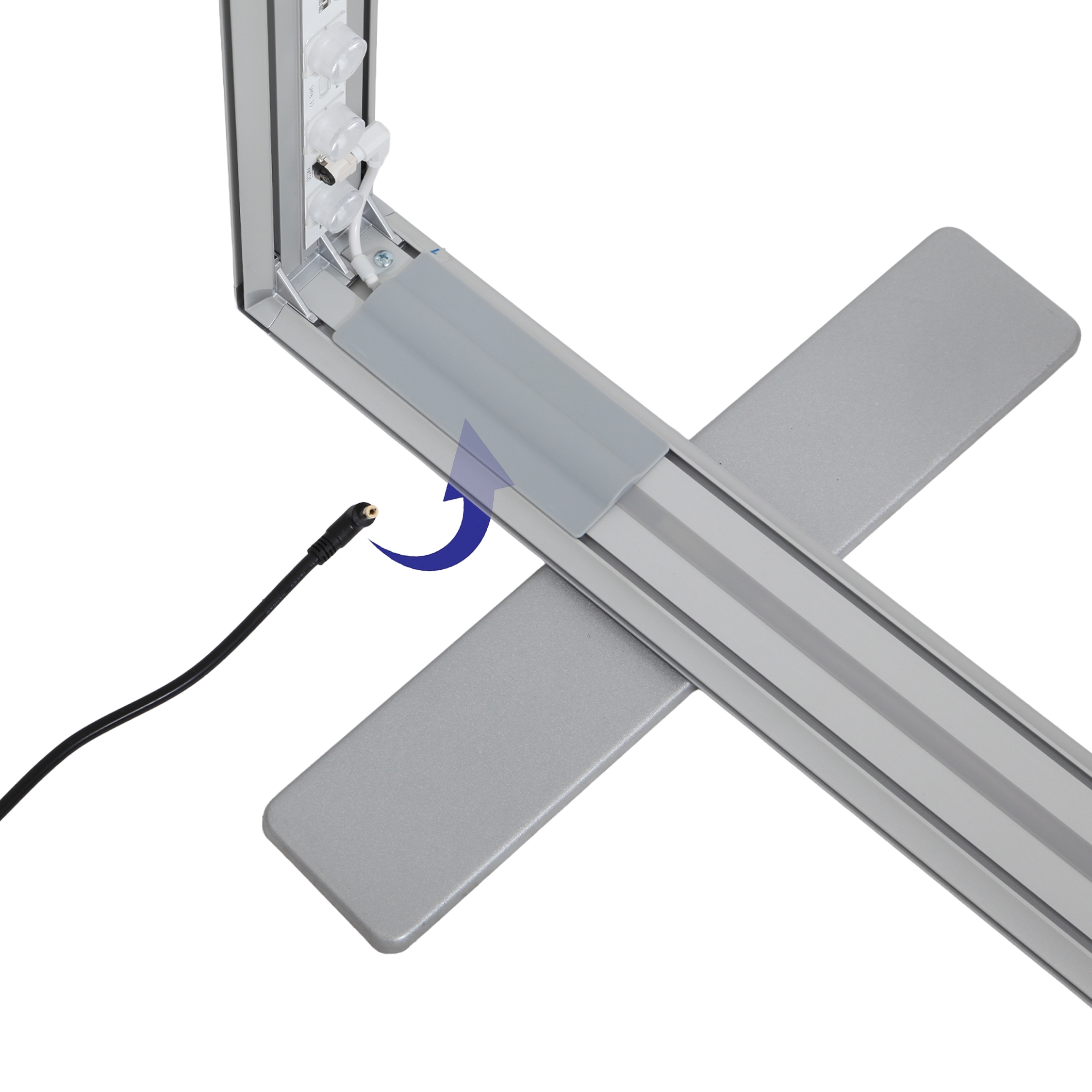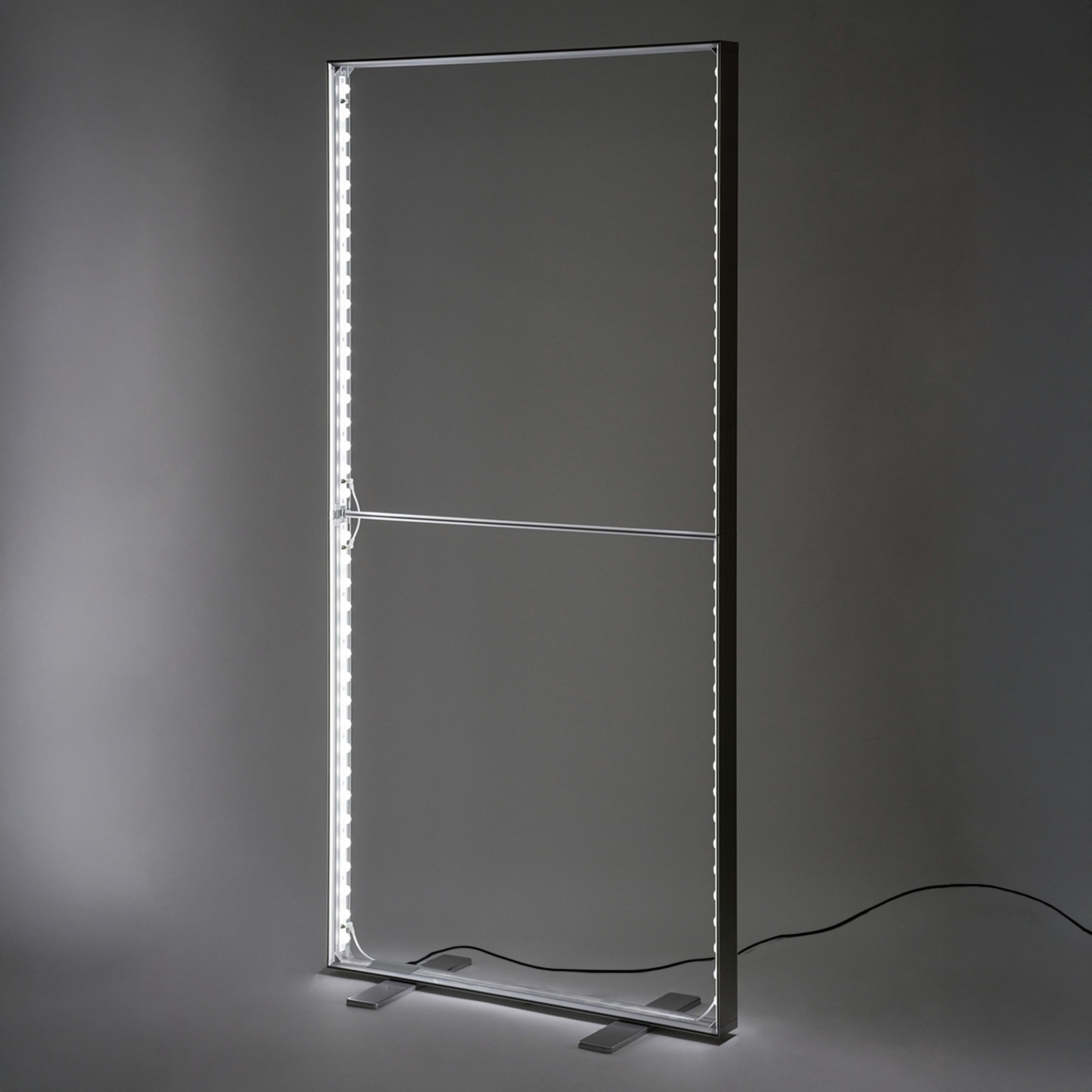 En perfekt lysvæg til dobbeltsidede reklamer. Ideel til brug ved messe, udstillinger, arrangementer eller i offentlige rum.