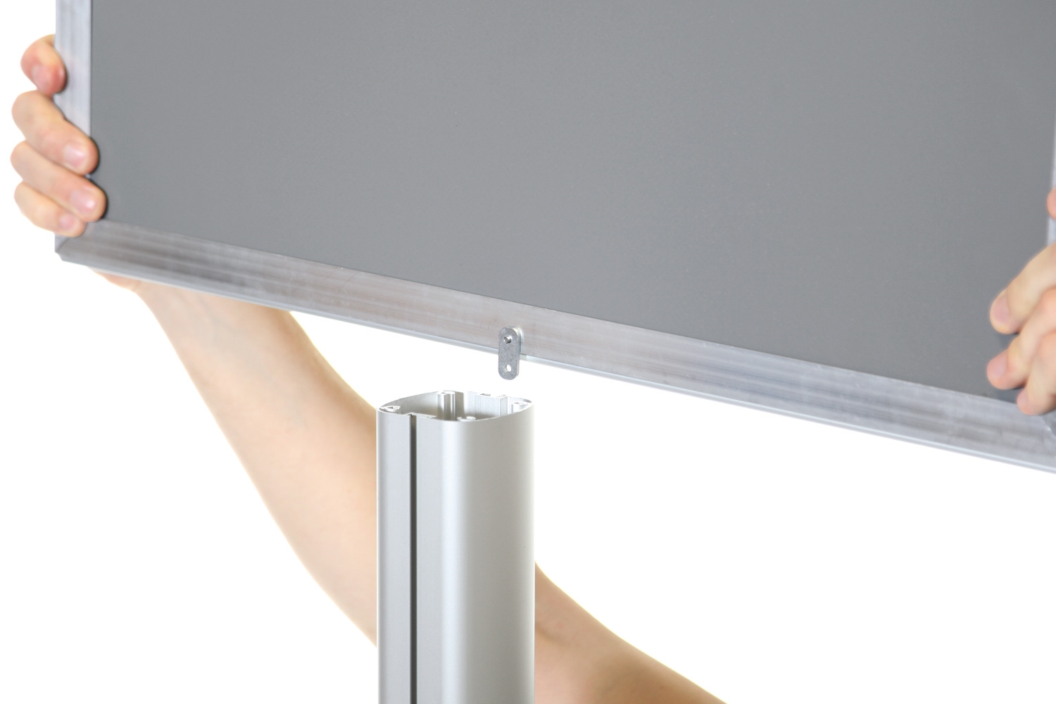 ProStand #1 er et kraftigt og alsidigt aluminium plakatstativ monteret med 2 stk klikrammer med 30mm afrundet profil.