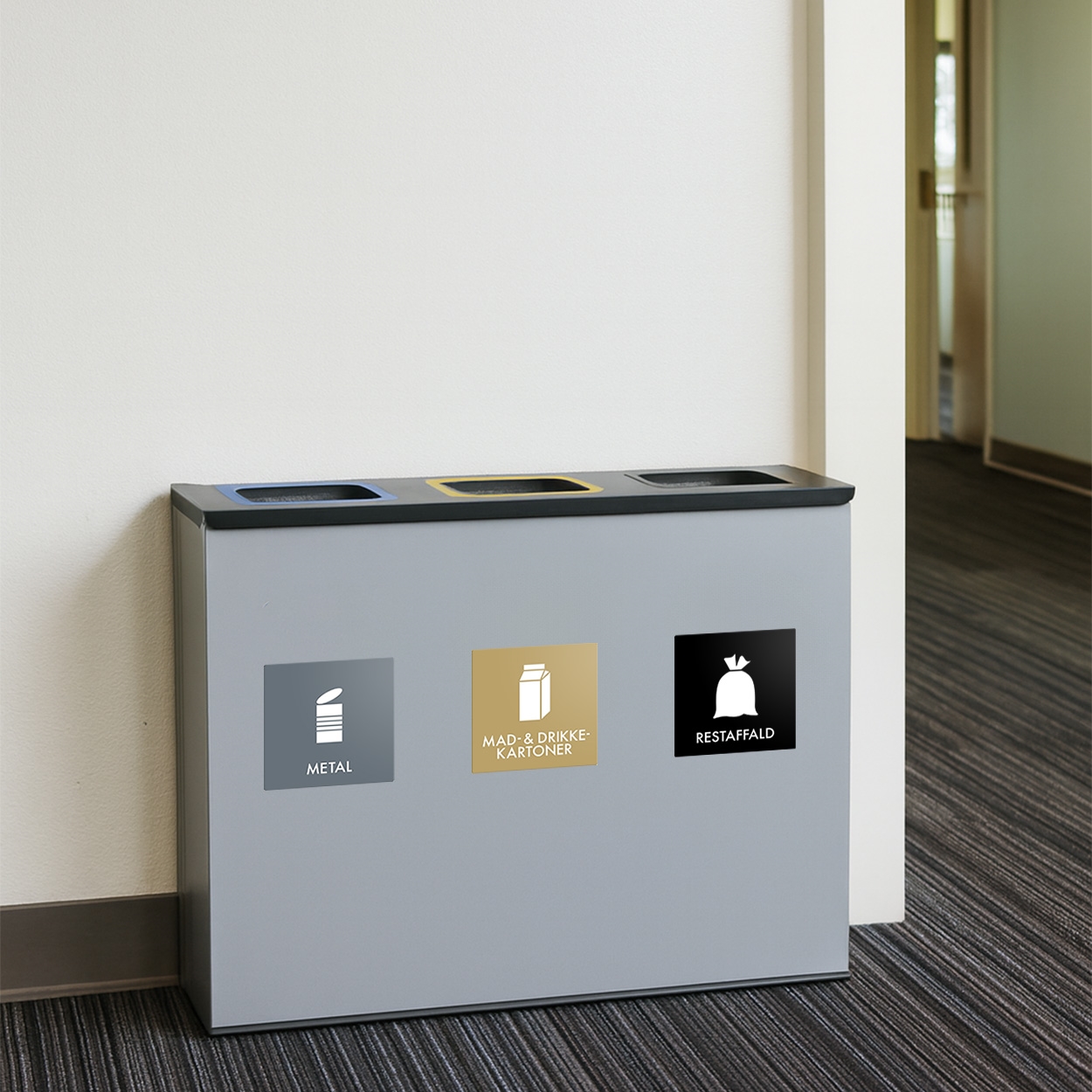 Eco affaldsstationer er simple og passer til ethvert professionelt miljø - uanset om det er på lageret, på kontoret, i fitnesscentret, i storcentret osv.