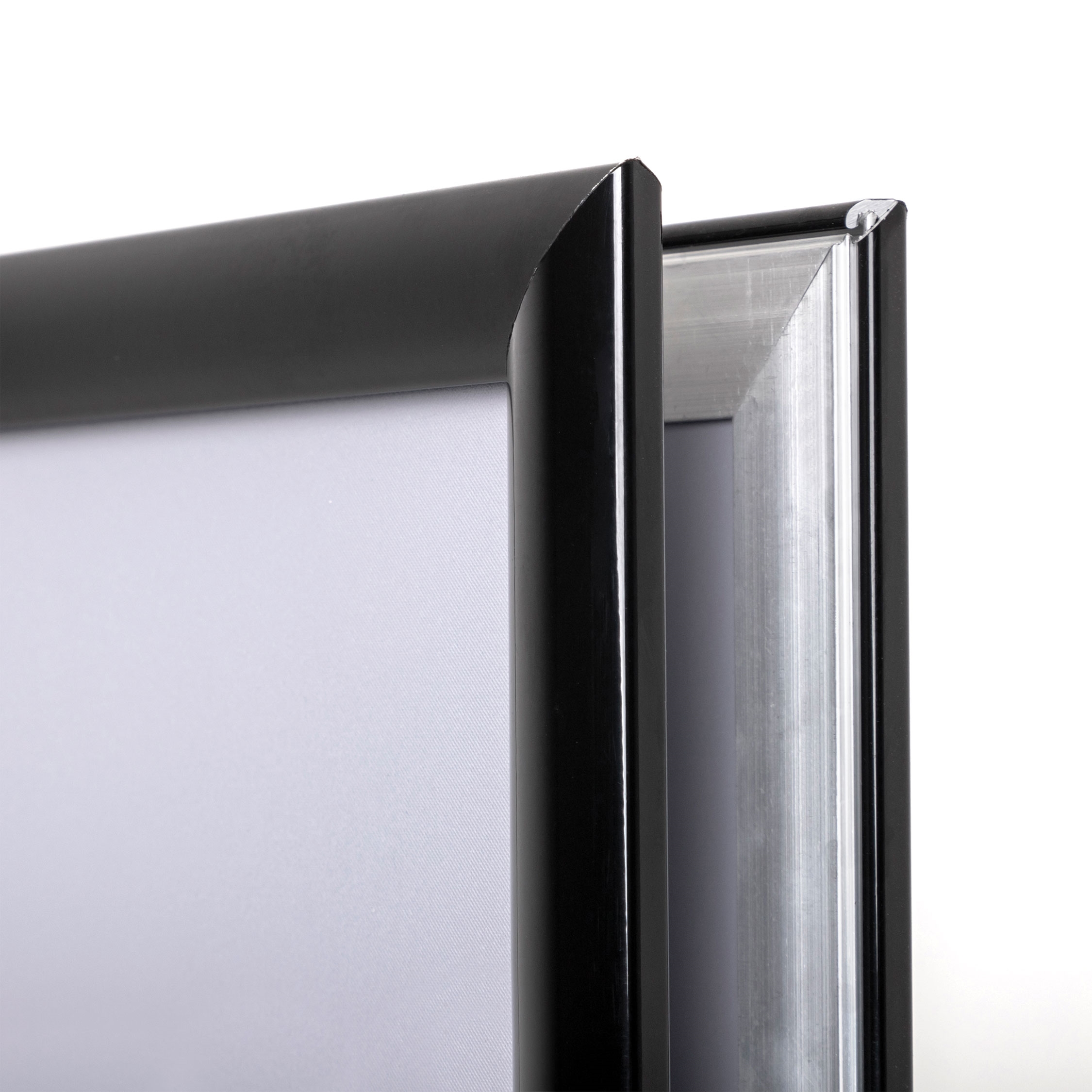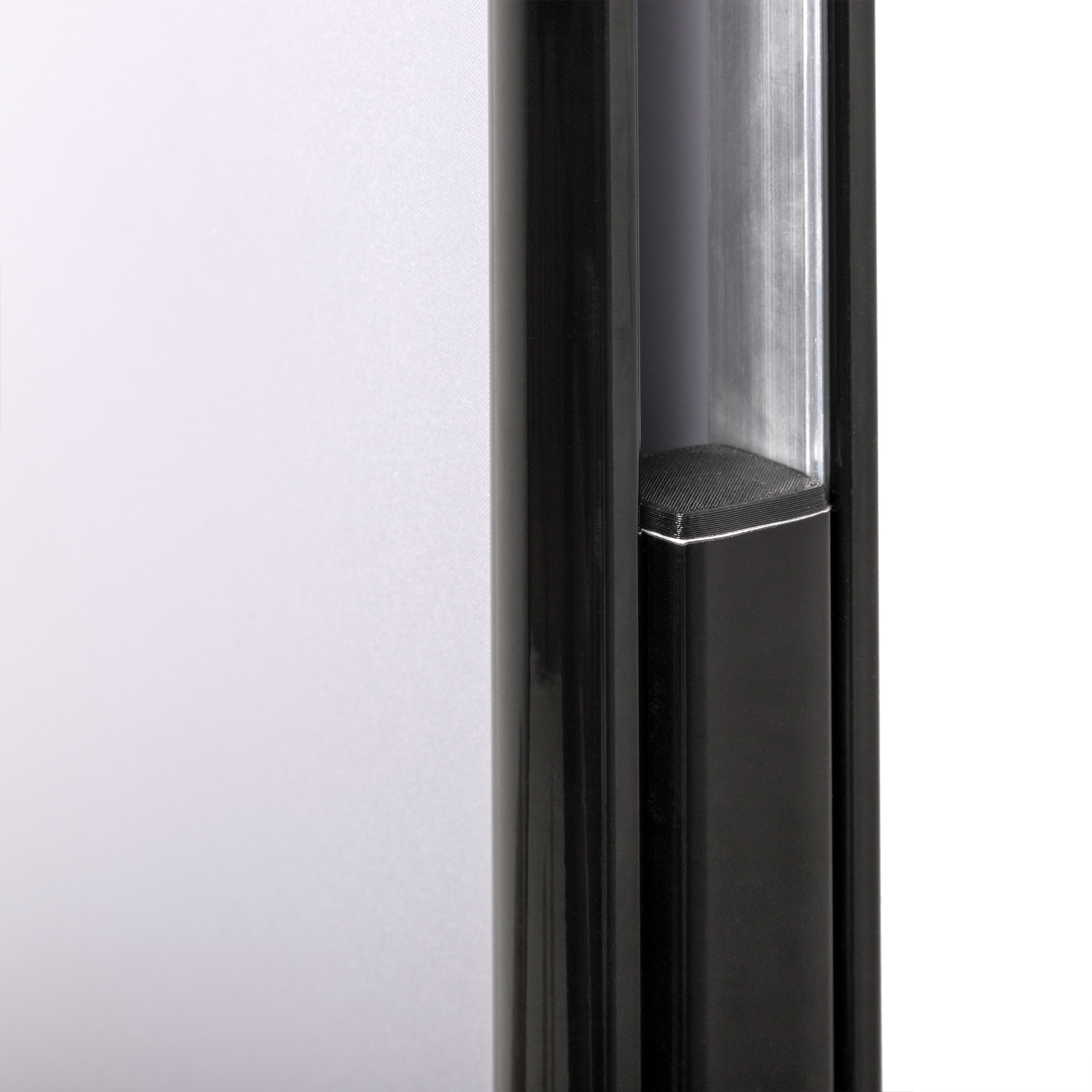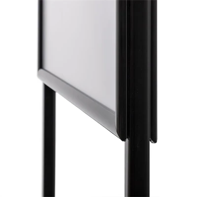 Frame Infostander 2xA1 er en ekstra stor plakatstander, der giver plads til to A1-plakater over hinanden. Den praktiske klikramme gør plakatudskiftning hurtigt og enkelt, mens den sorte aluminiumsramme giver både stabilitet og et eksklusivt udtryk.