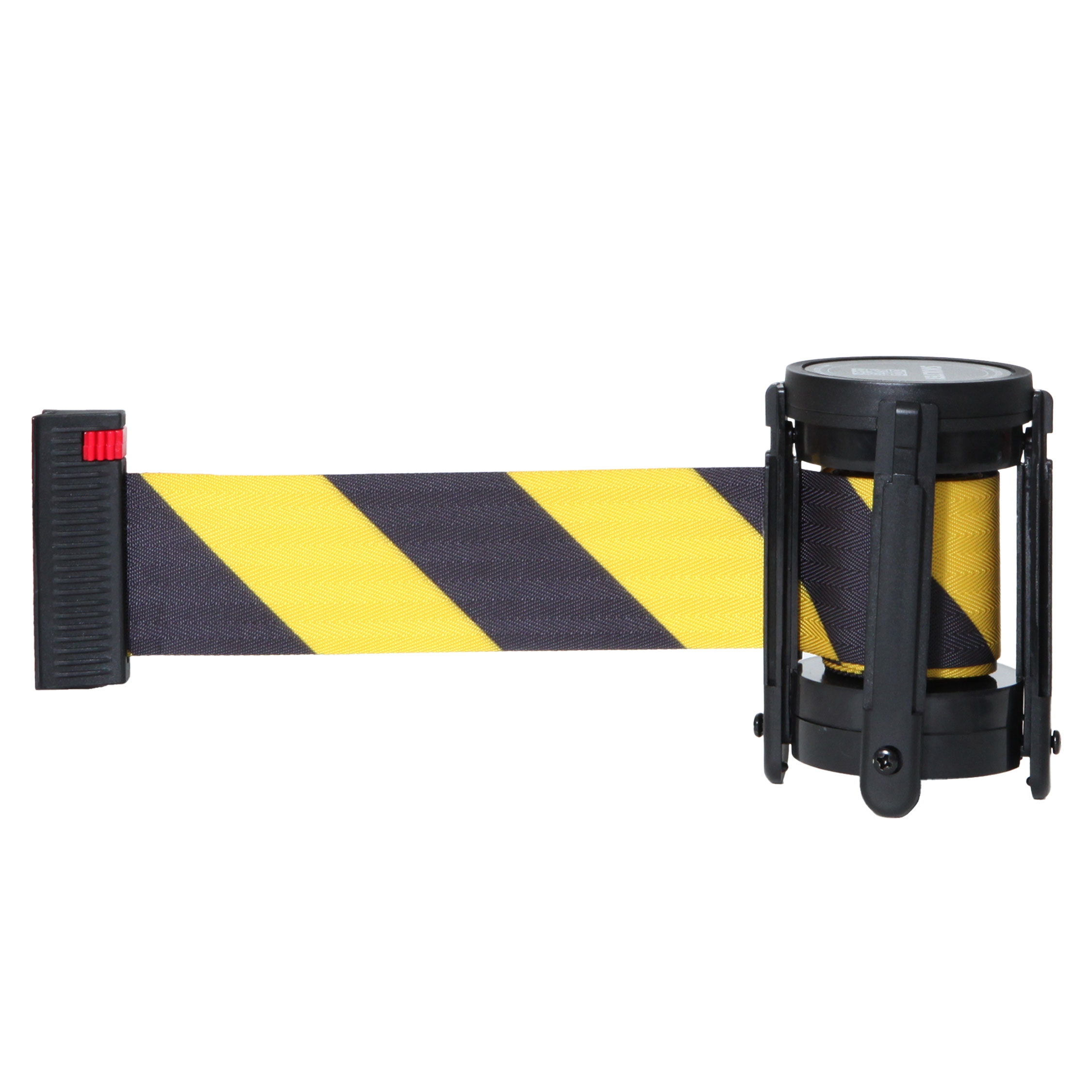 Monterbar kassette med 3 meter gult / sort rullebånd til afspærringsstolper.