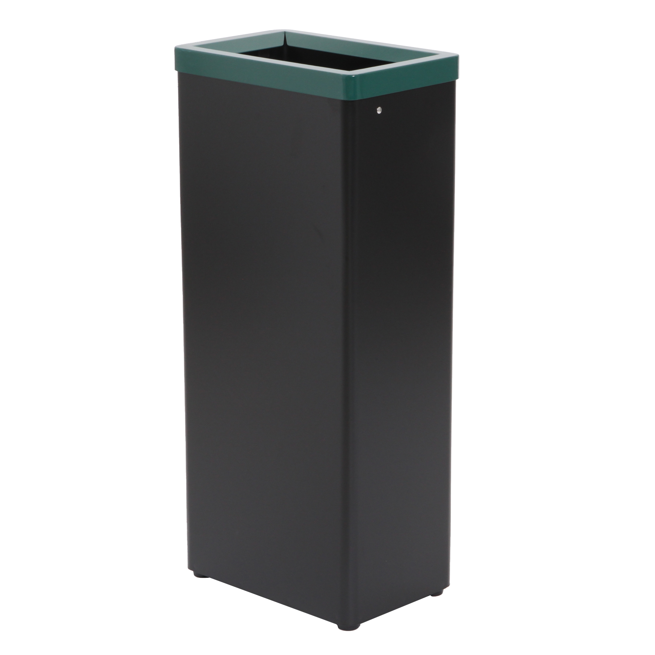 Modulær sort pulverlakeret stål affaldssortering spand med farvet åben top / låg til både indendørs og udendørs brug.