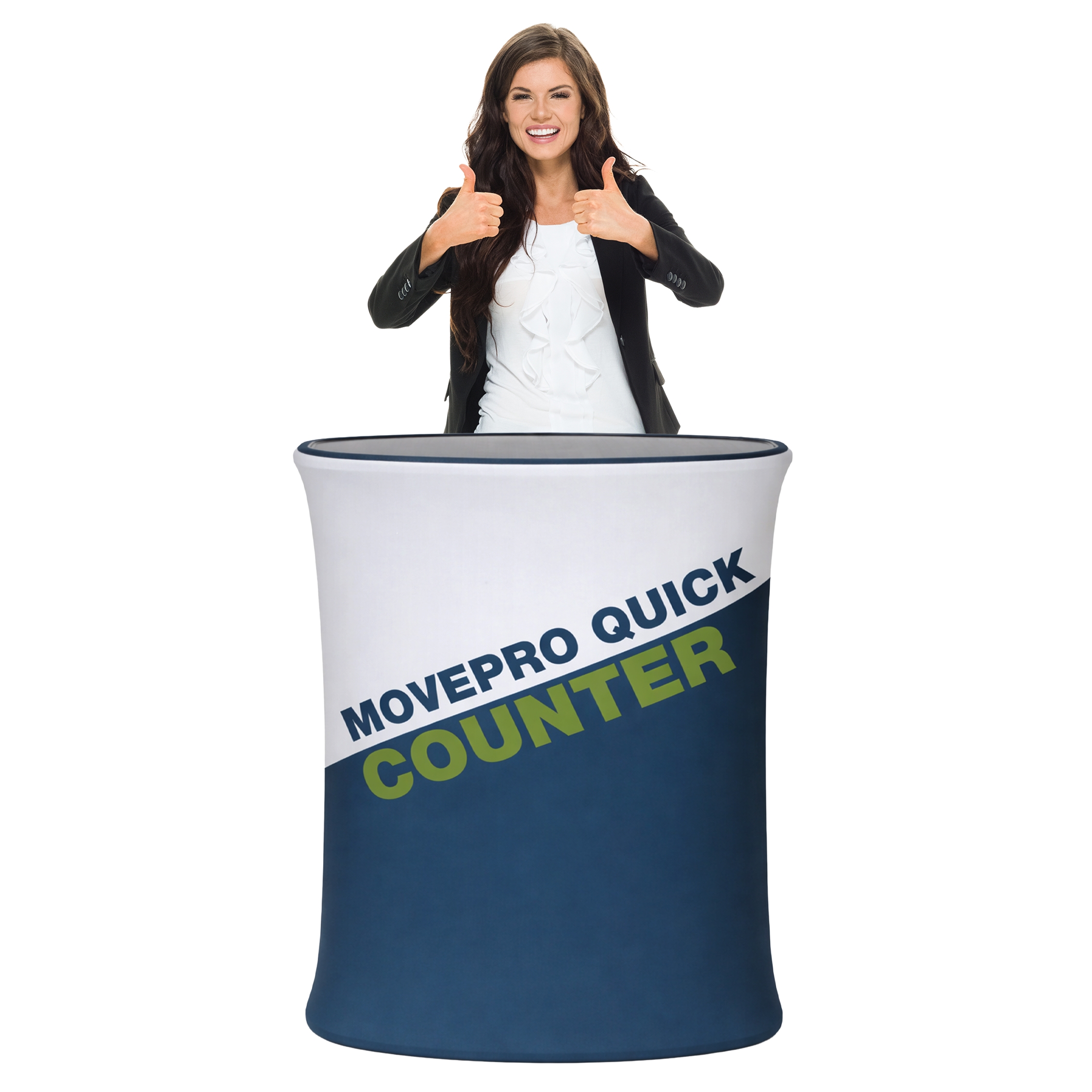MovePro Quick er et simpelt og smart pop up messebord, som både er nemt og hurtigt at sætte op, pakke sammen og transportere.