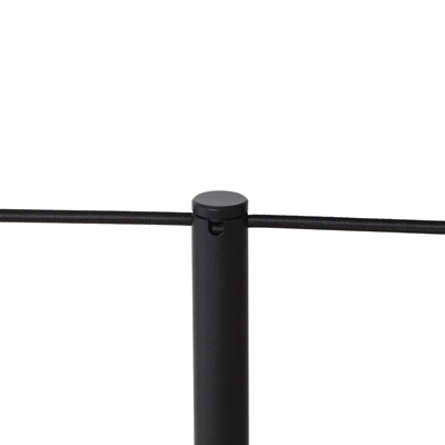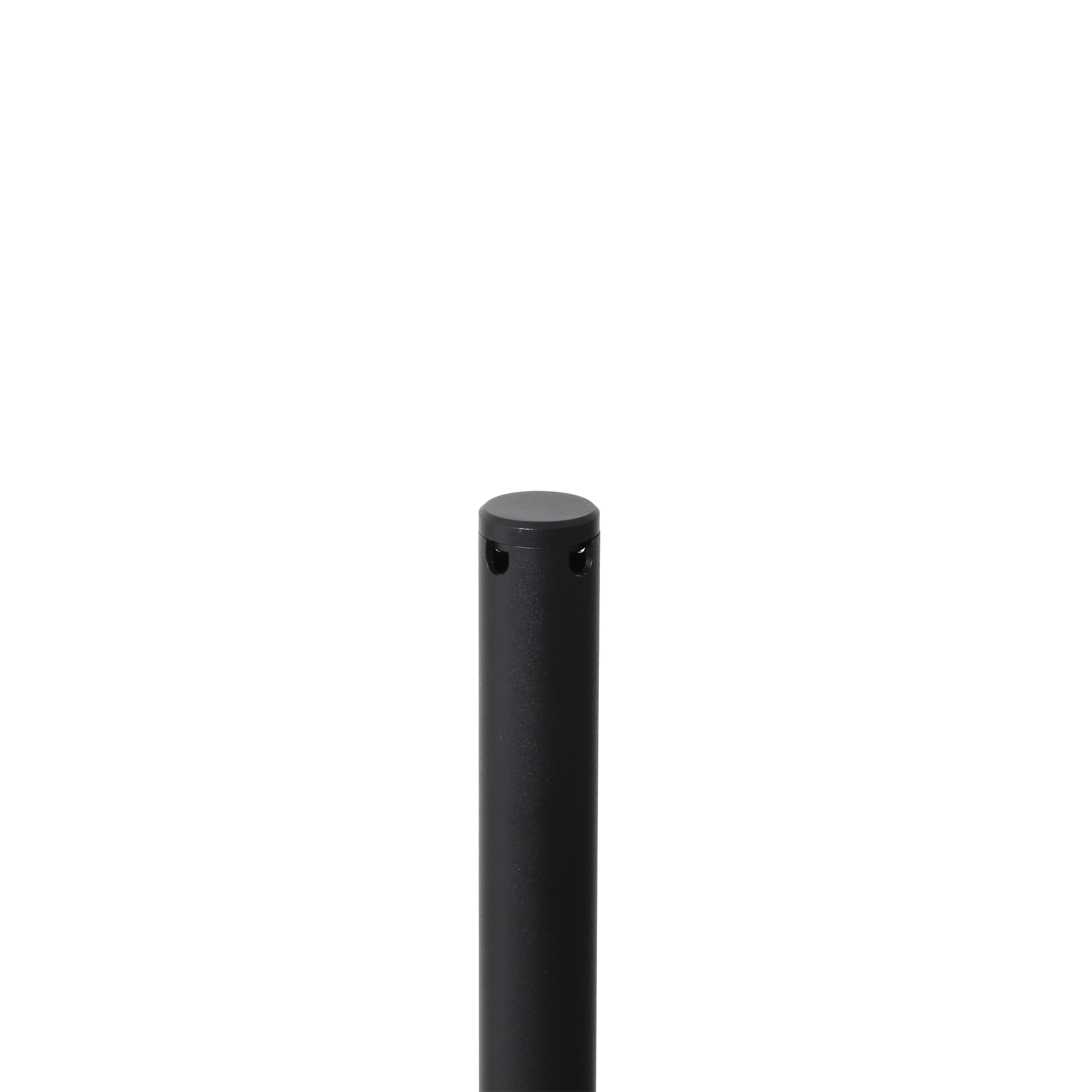 Stolpen er fremstillet i struktureret pulverlakeret stål med en elegant mat finish. Selve stolpen har en diameter på blot 25 mm, hvilket giver et let og diskret udtryk, mens den stadig er yderst robust. Den runde fod har en diameter på 25 cm og vejer hele 6,5 kg, hvilket gør afspærringsstolpen ekstremt stabil og meget svær at vælte – selv i områder med høj trafik.