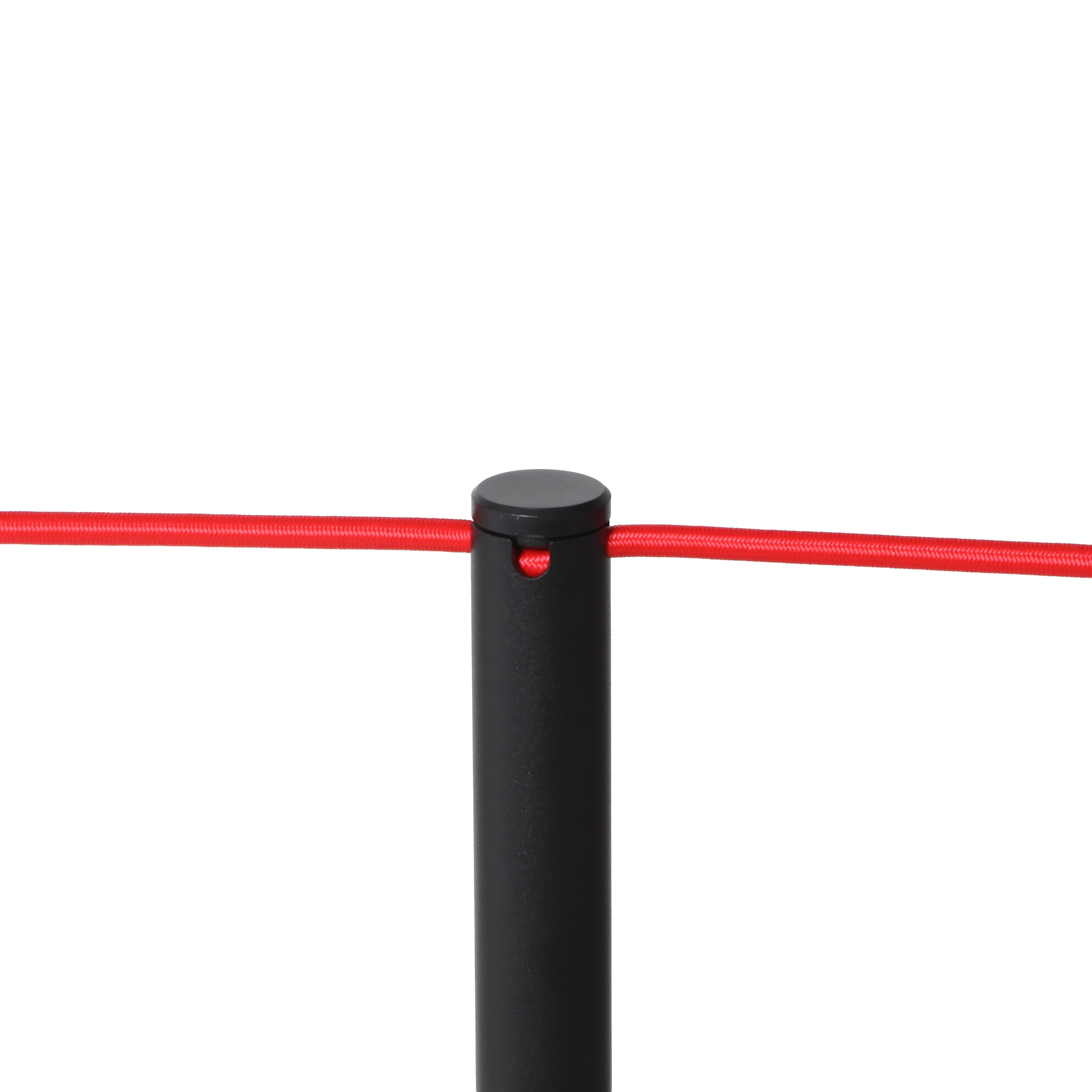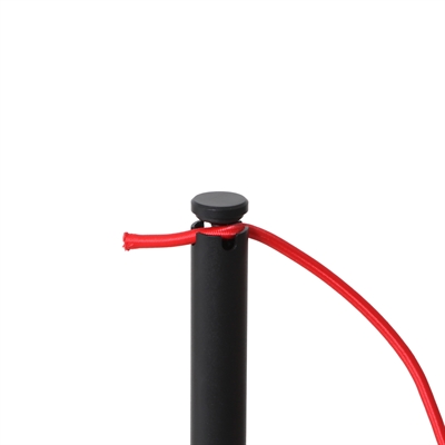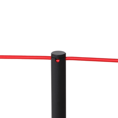 Det elastiske reb monteres nemt ved at skrue toppen af stolpen, placere rebet indvendigt og skrue toppen på igen. Stolpens top er udstyret med 4 riller, som giver stor fleksibilitet i opsætningen: