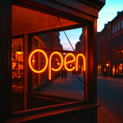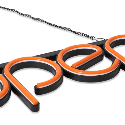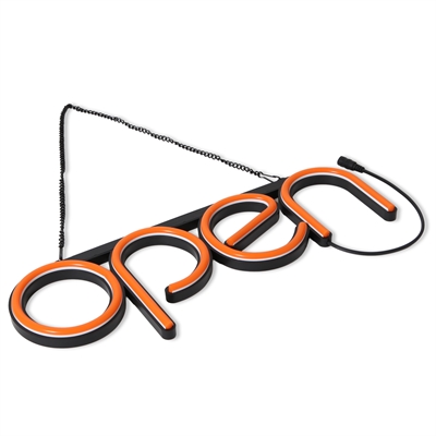 Tiltræk flere kunder og se din virksomhed vokse med vores OPEN LED Neonskilt. Skab opmærksomhed og vis alle omkring jer, at i er åbne for forretning! Vores skarpe og iøjefaldende orange LED skilt vil bringe flere kunder gennem jeres døre. Farverigt og skinnende LED lys.