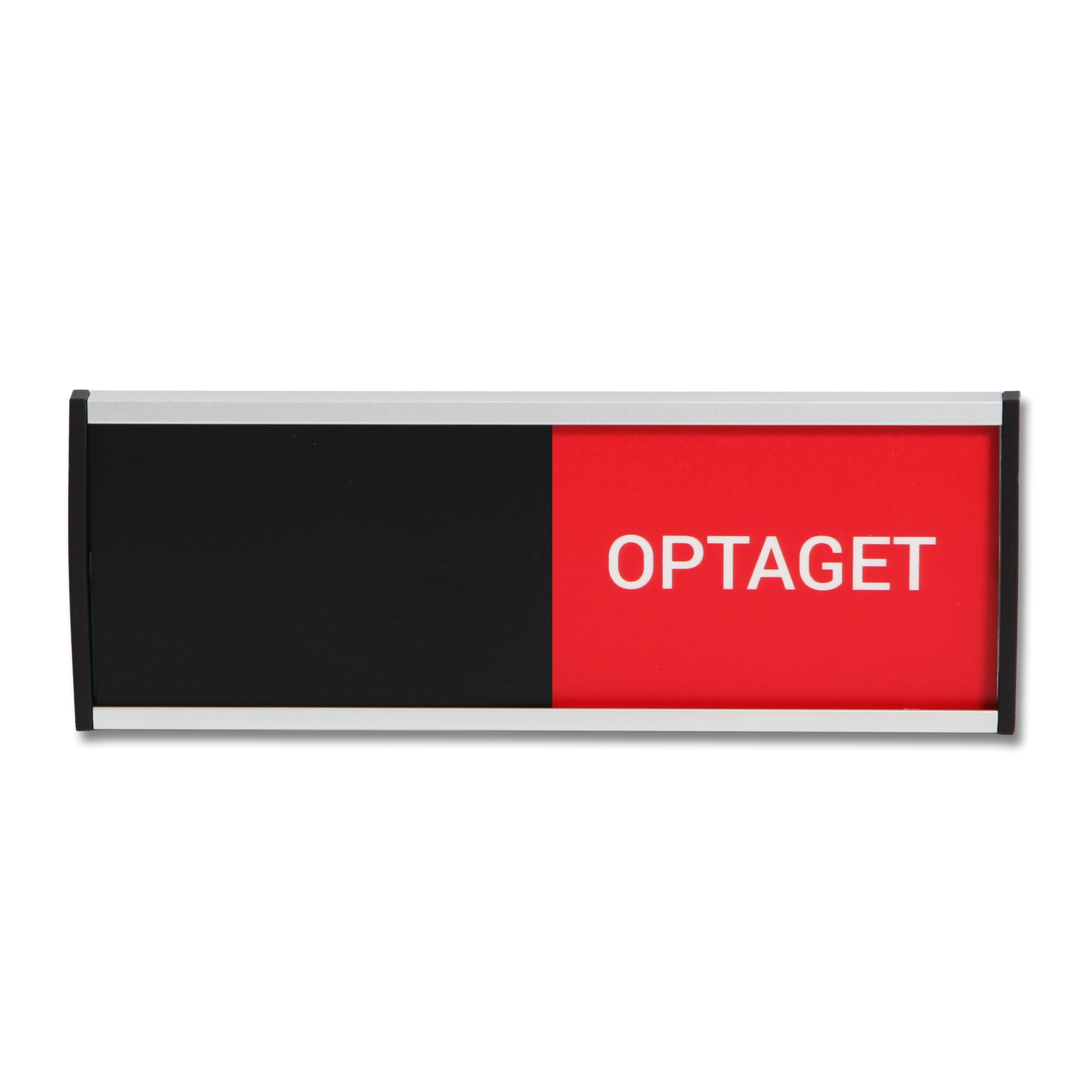 Premium Ledig / Optaget skilt er et eksklusivt og professionelt dørskilt, udviklet til virksomheder og kontormiljøer, hvor kvalitet, design og finish er i fokus. Skiltet er fremstillet i formpresset aluminium med sorte plast-endestykker og har et solidt, gennemført udtryk, der tydeligt adskiller sig fra standardløsninger.