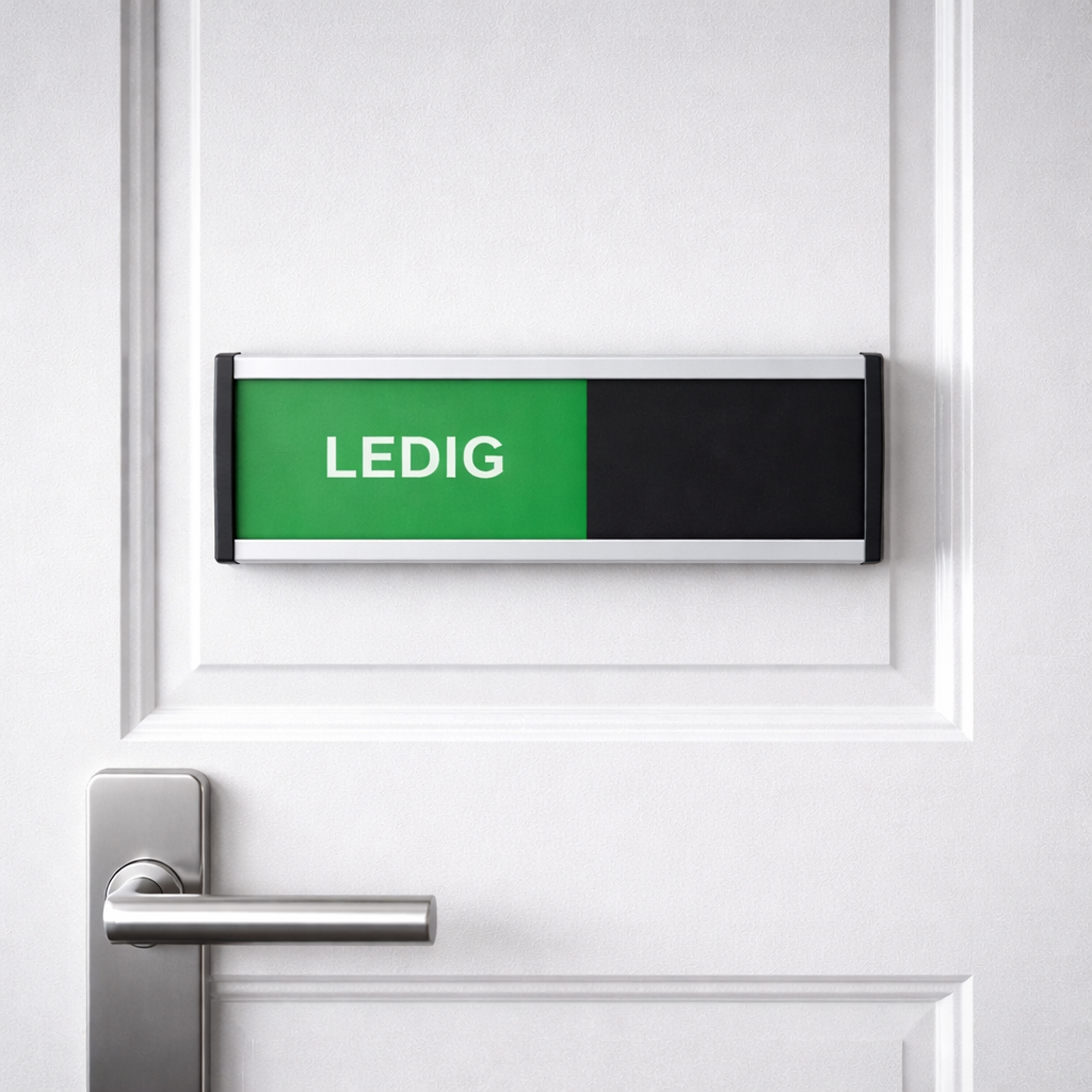 Premium Ledig / Optaget skilt er det oplagte valg, når du ønsker en langtidsholdbar, stilren og professionel løsning, der matcher et moderne og kvalitetsbevidst arbejdsmiljø.