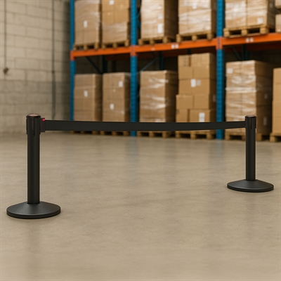 QueueMax Mini Sort Afspærringsstolpe med bånd