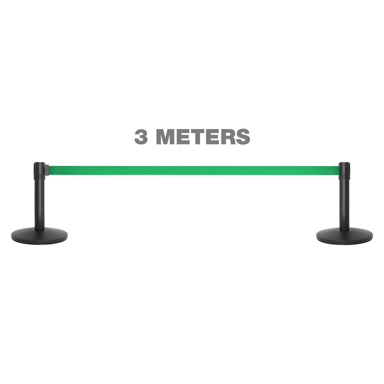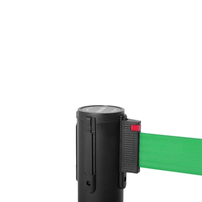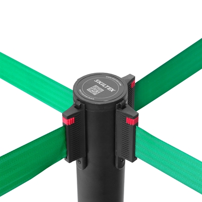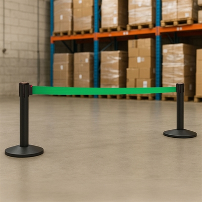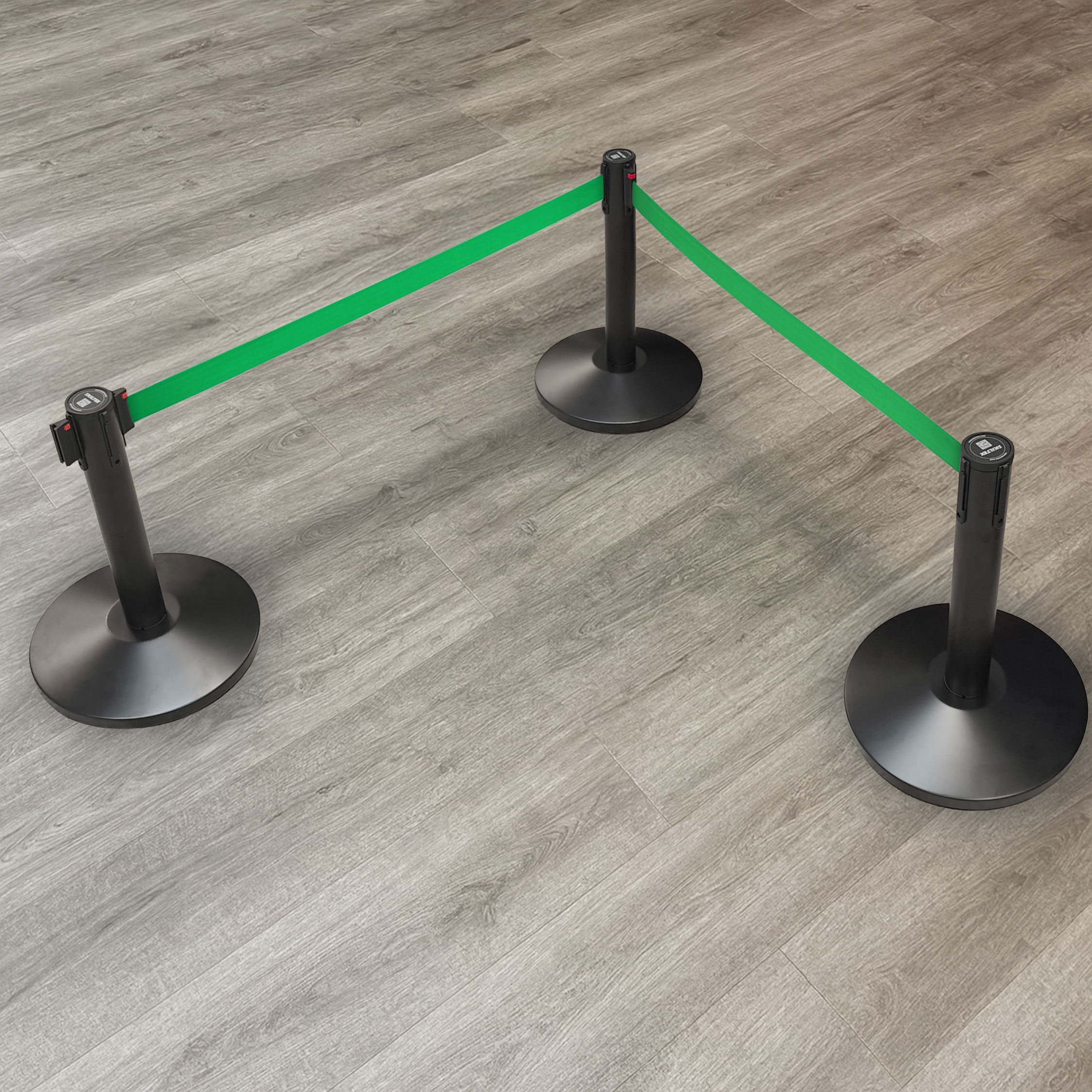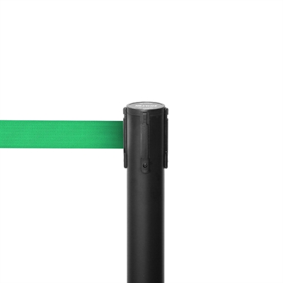 QueueMax Mini Sort Afspærringsstolpe med grønt bånd
