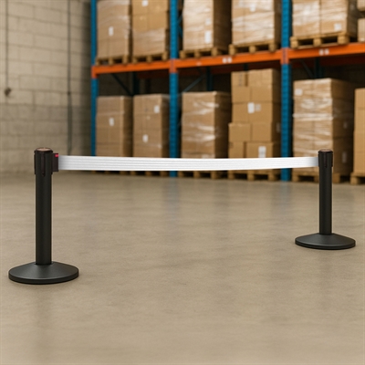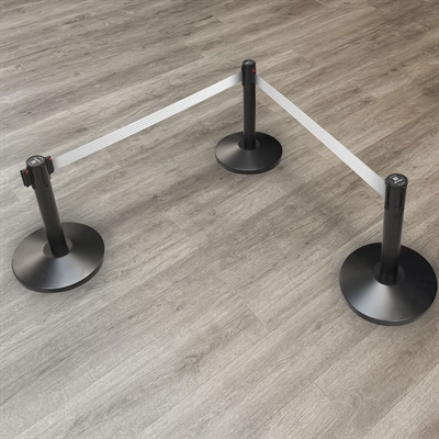 QueueMax Mini Sort Afspærringsstolpe med hvidt bånd