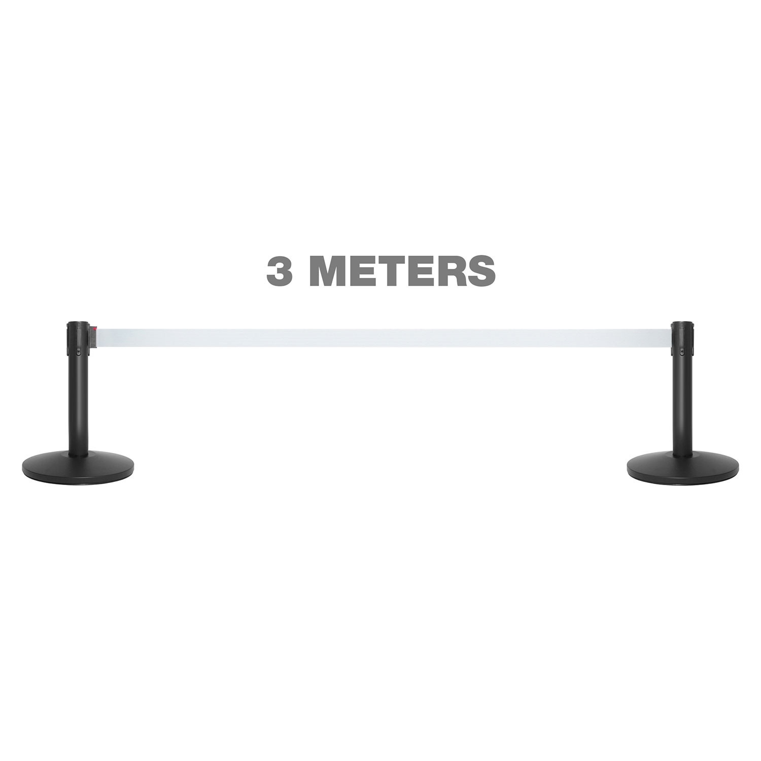 De 3 meter lange, optrækkelige hvide bånd er længere end industristandarden på 2,3 m. Det betyder, at du kan nøjes med at købe ca. 30% færre stolper end normalt.