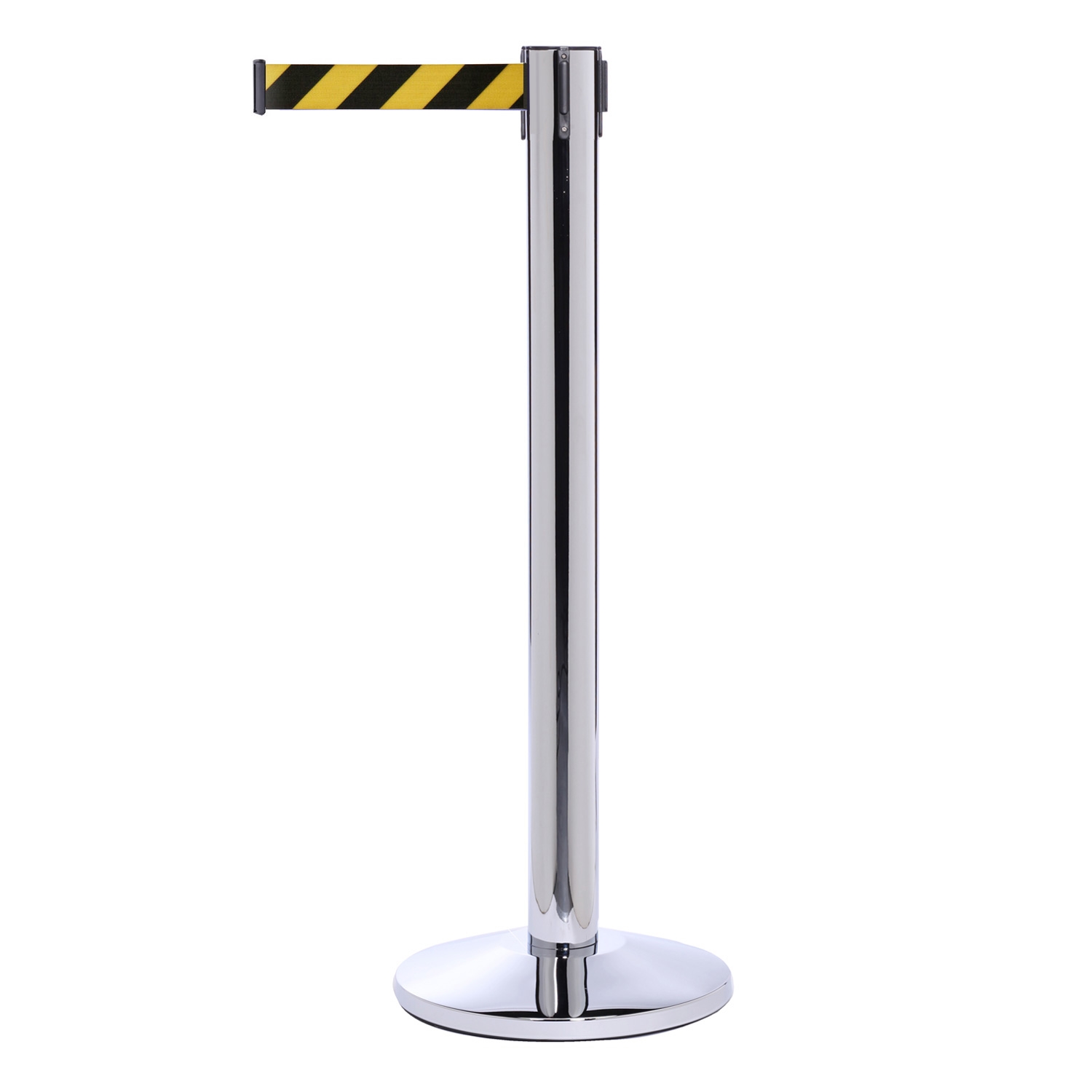 QueuePro Sølv Afspærringsstolpe med gult/sort bånd - 500 cm
