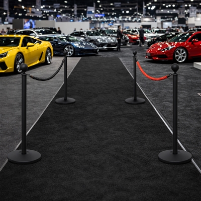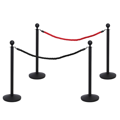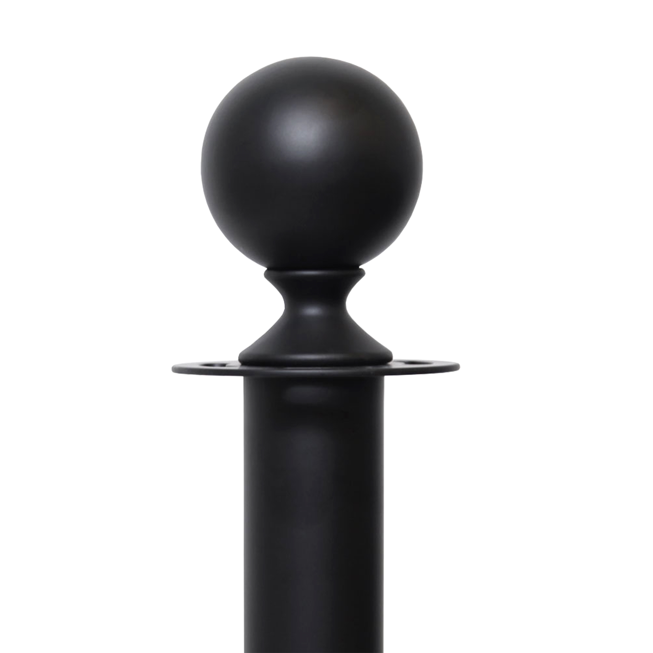 Mat sort pulverlakeret RopePro afspærringsstolper med kugle-top.