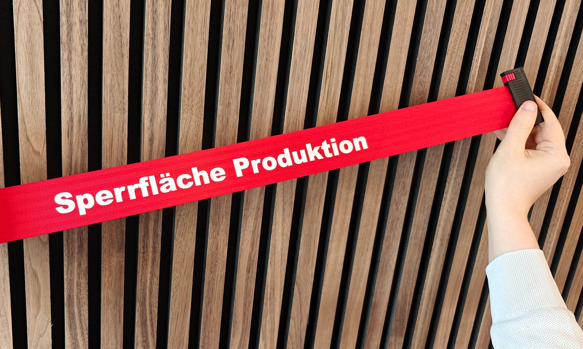 Båndene er udstyret med en lås, som sikrer, at de sidder godt og fast på andre stolper. Skiltex afspærringsstolper har en universel bånd-lås, som passer til andre populære afspærringstolpe-brands – med garanti.