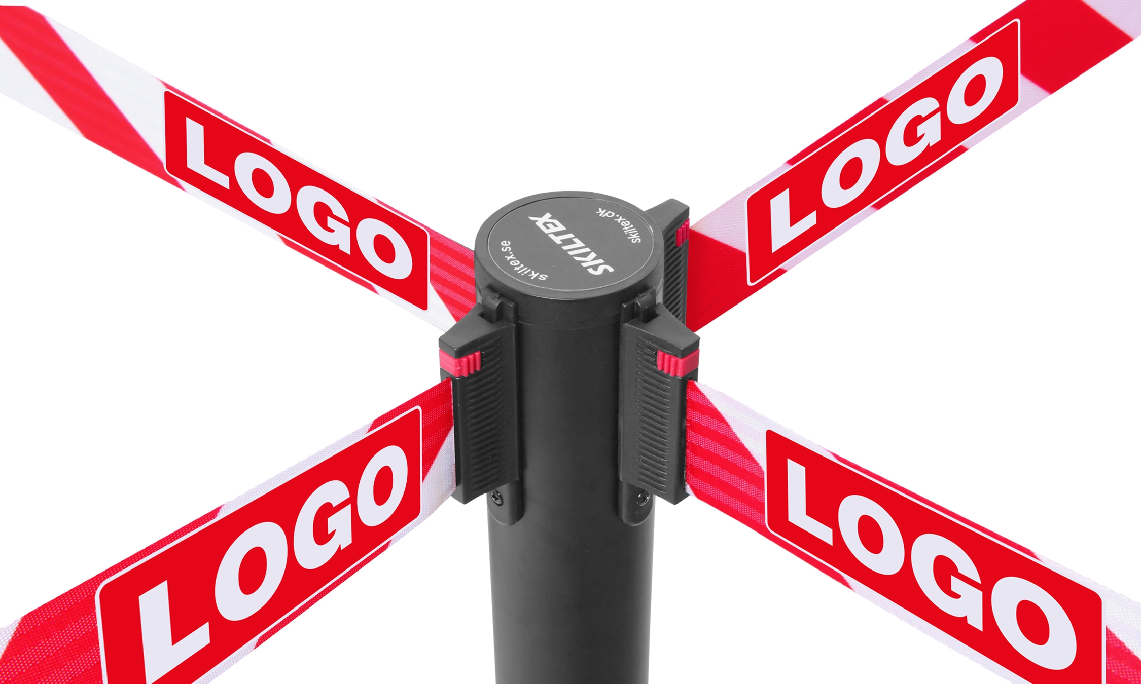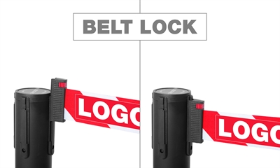 Båndene er udstyret med en lås, som sikrer, at de sidder godt og fast på andre stolper. Skiltex afspærringsstolper har en universel bånd-lås, som passer til andre populære afspærringstolpe-brands – med garanti.
