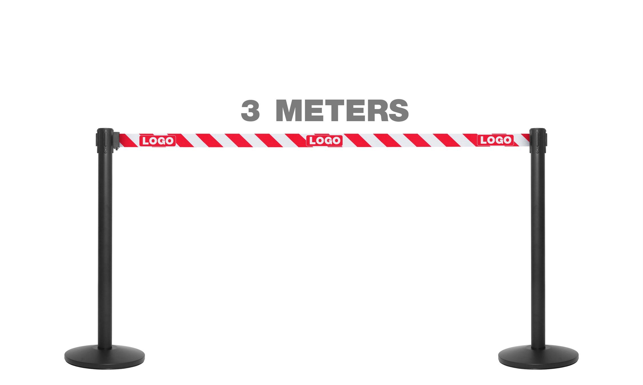 De lange 3 meter optrækkelige bånd er en del længere end industristandarden, som er 2,3 meter. Dette betyder, at med vores stolper kan du nøjes med at købe 30% færre stolper end normalt.