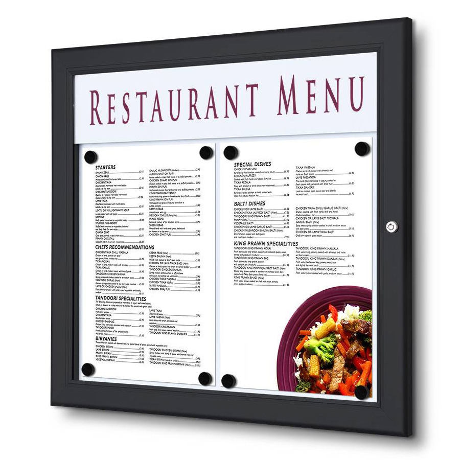 Sort outdoor magnetisk menuskab med logo top - 2xA4