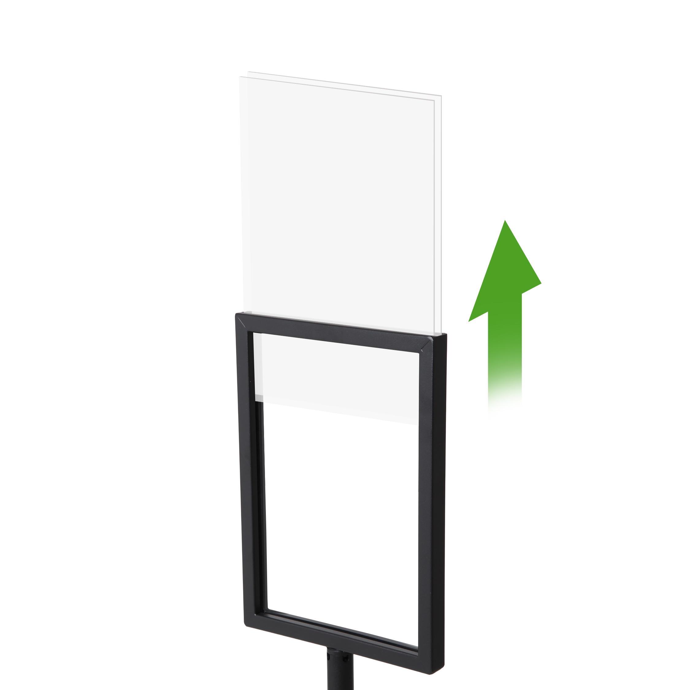 Praktisk og stilren plakatramme designet til Museo afspærringsstolper. En ideel løsning til at vise informationer, priser eller beskeder på en professionel måde. Rammen monteres nemt på stolpen og præsenterer budskabet på en elegant måde.