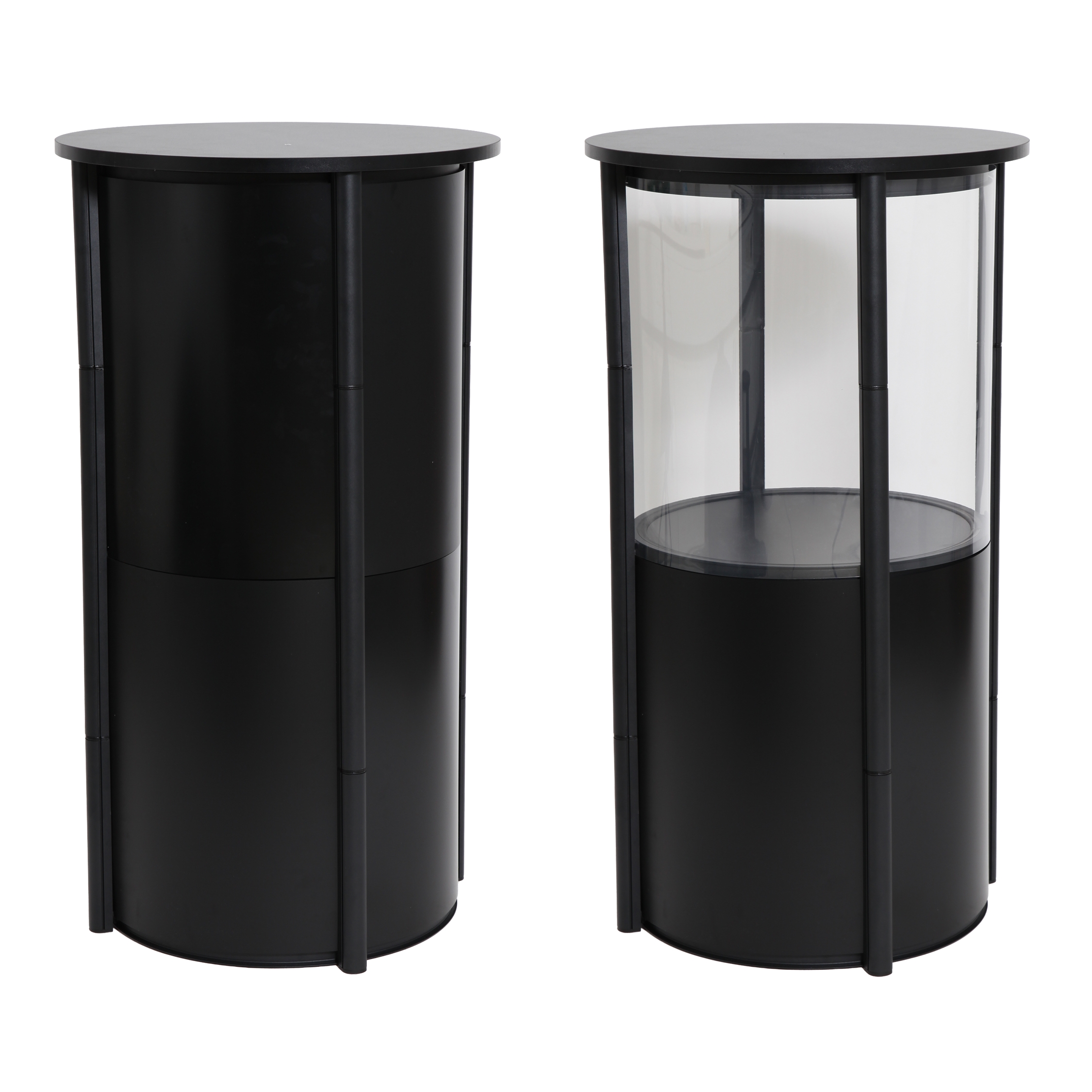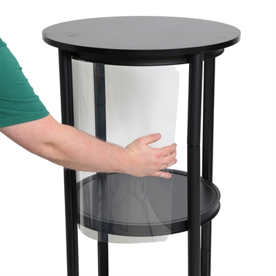 Disken leveres med 8 stk. glasklare PVC plader, samt 8 stk sorte PVC plader, som kan monteres rundt om disken for at beskytte de udstillede varer.