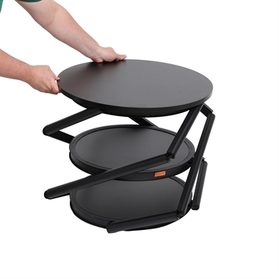 Vores spiral varemontre foldes hurtigt og let op og ned, helt uden værktøj.