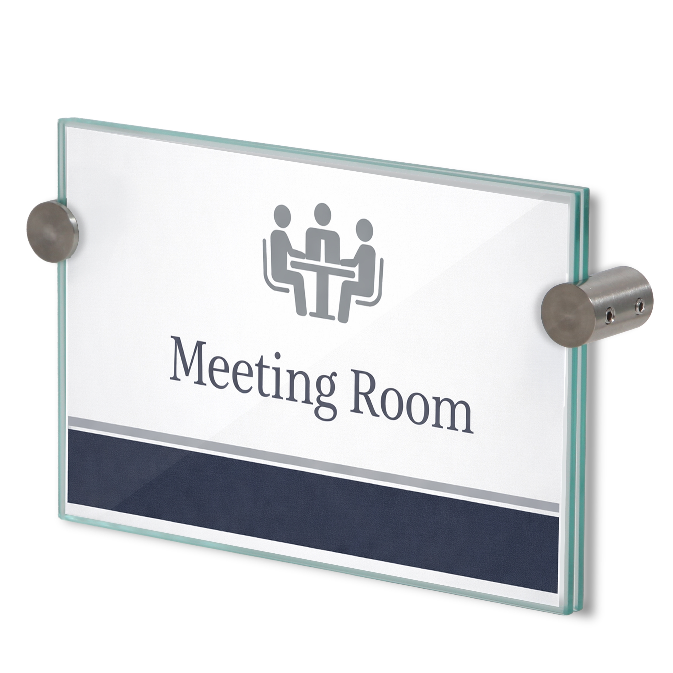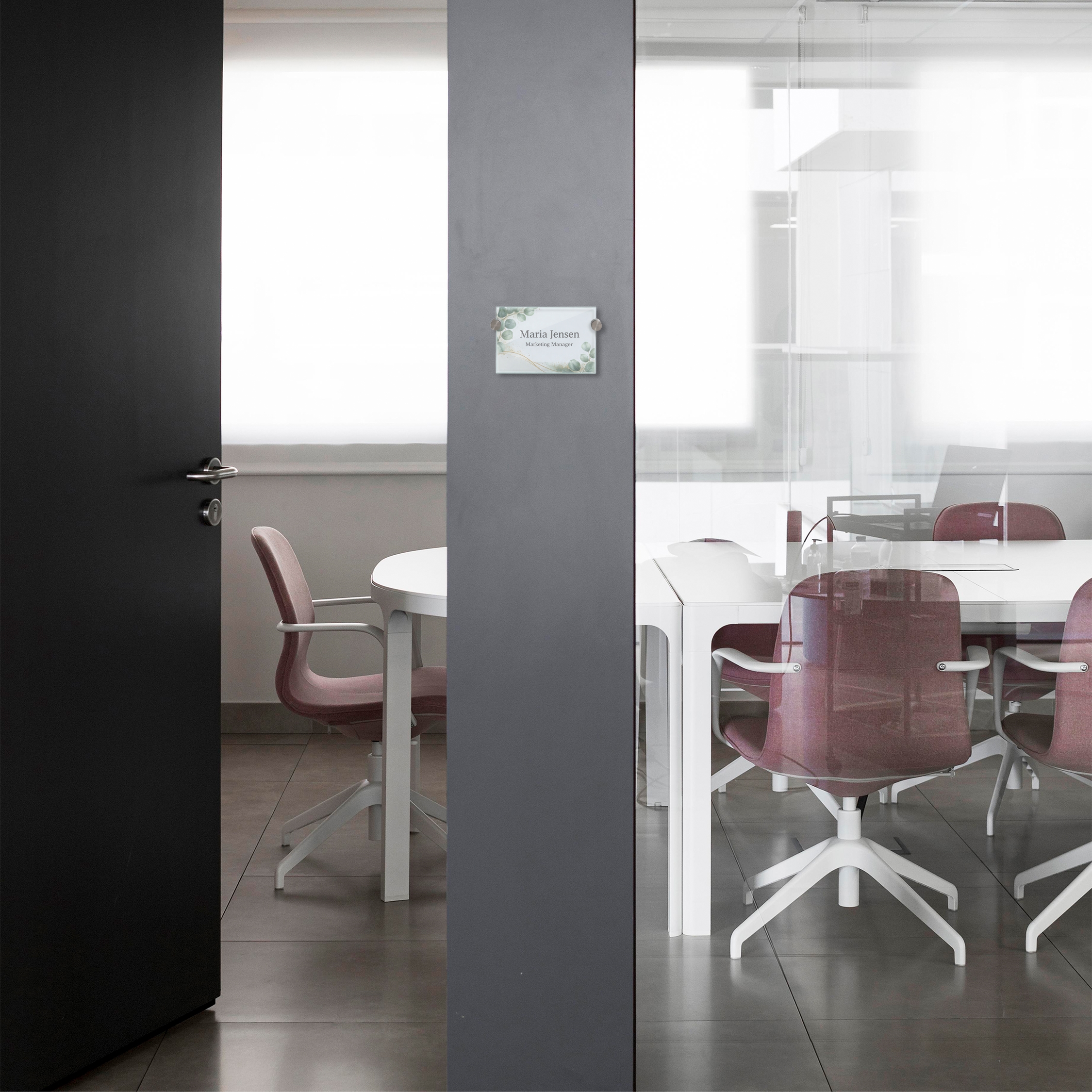 Et stilrent glasskilt, der passer perfekt til kontorer, mødelokaler, klinikker og andre professionelle omgivelser.