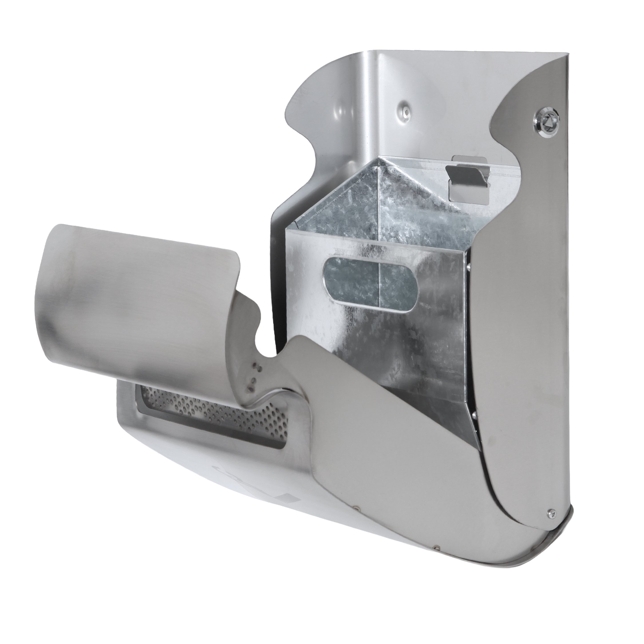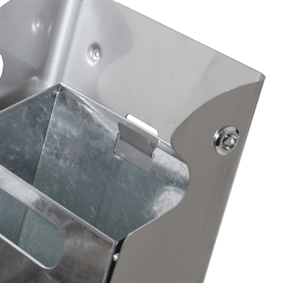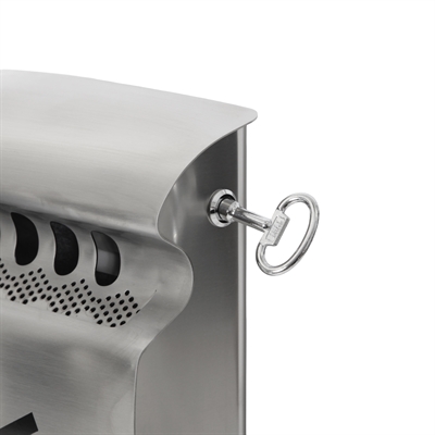 Askebægeret er nemt og hurtigt at tømme; fronten åbnes på siden med den medfølgende nøgle og så tages den indre galvaniserede stålspand nemt ud.