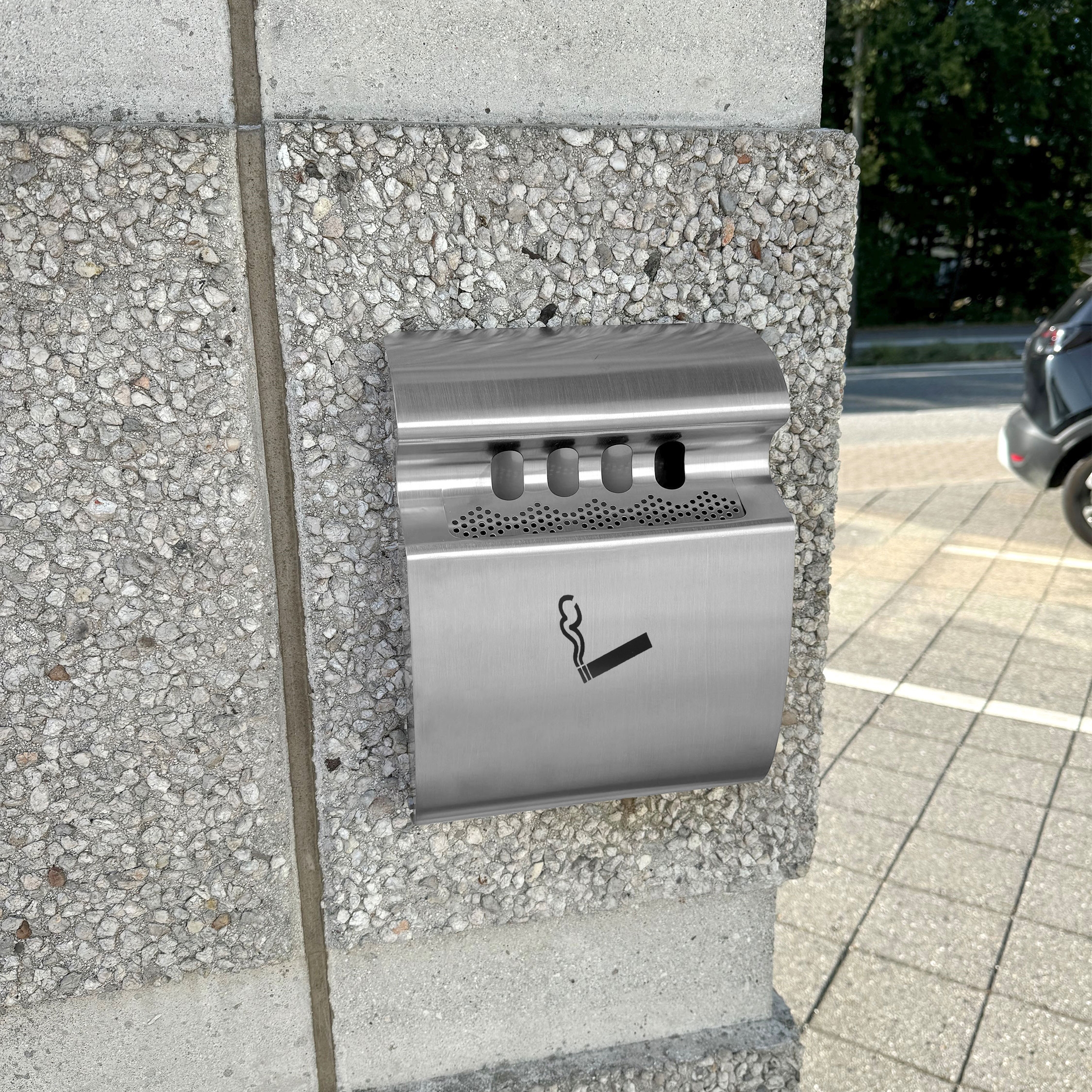 Fronten kan låses på siden og er udstyret med 4 huller og grill for nem bortskaffelse af cigaretskodder.