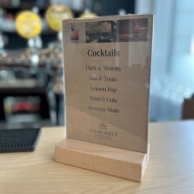 Perfekt til brug som menuholder på bordet eller som skilteholder – f.eks. når der er behov for et dobbeltsidet skilt eller et skilt i øjenhøjde.