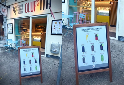 Dette fantastiske alsidige skilt kan bruges både som et traditionelt gadeskilt med 50x70 cm plakater eller som et kridttavle skilt, som kan skrives på med kridt eller kridtmarkers.