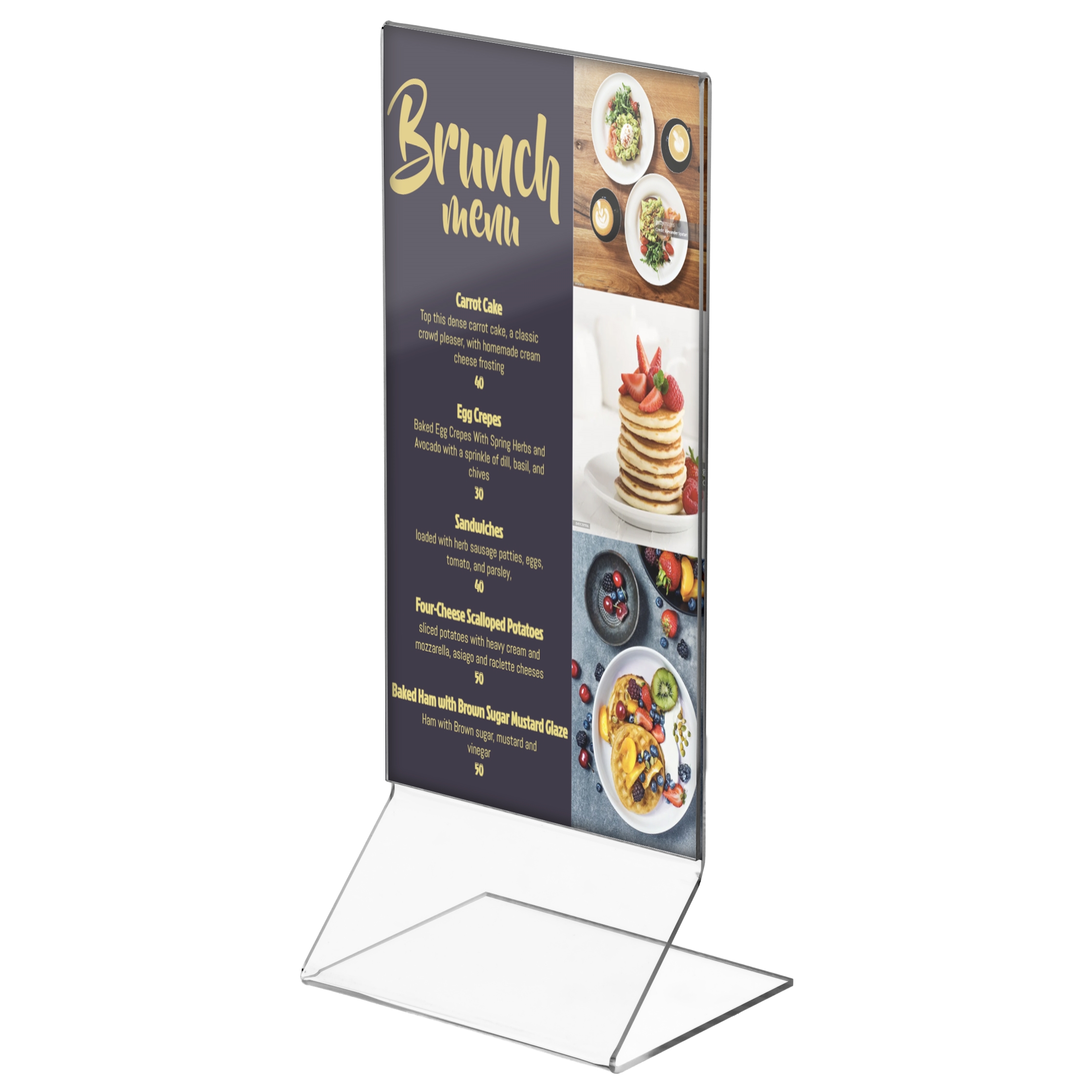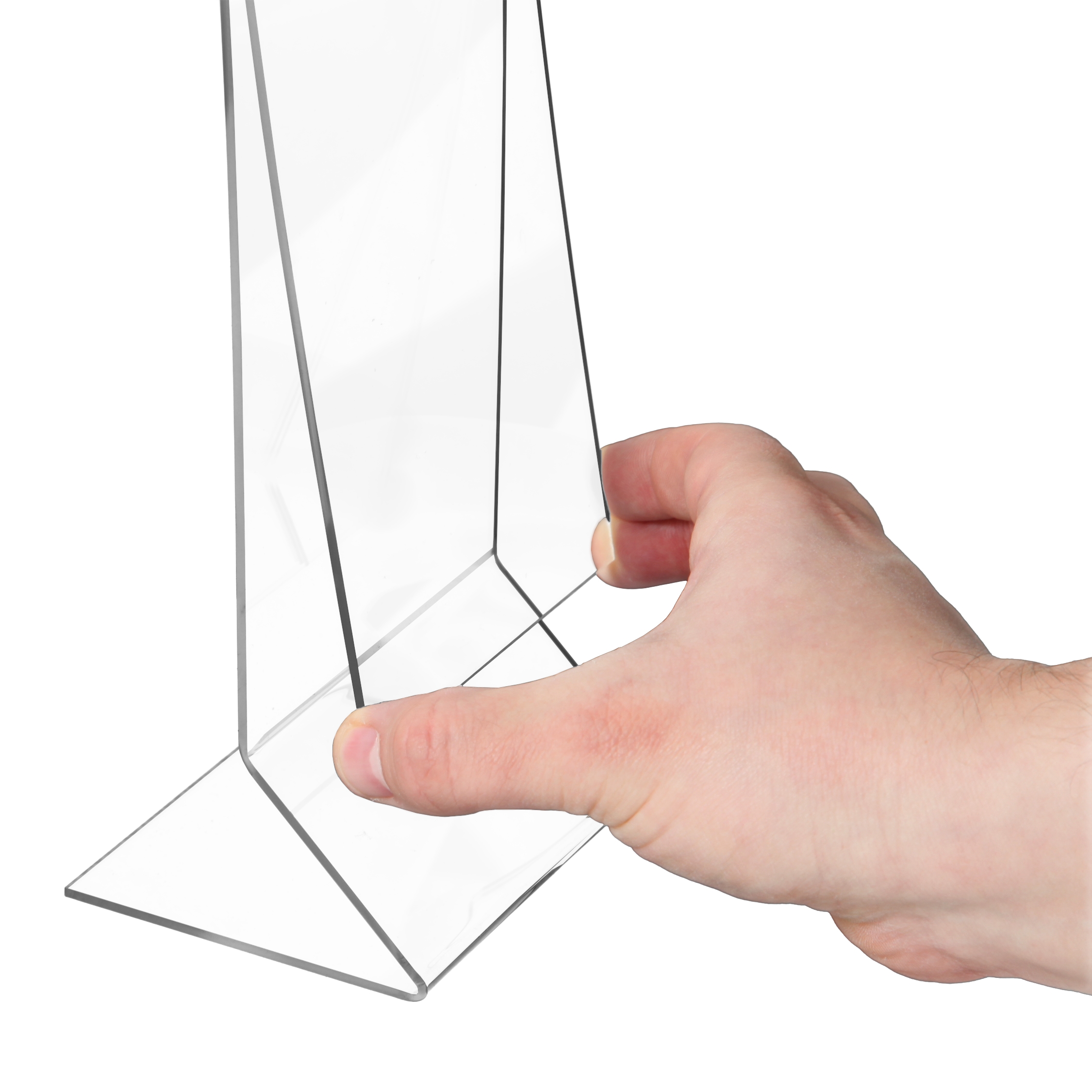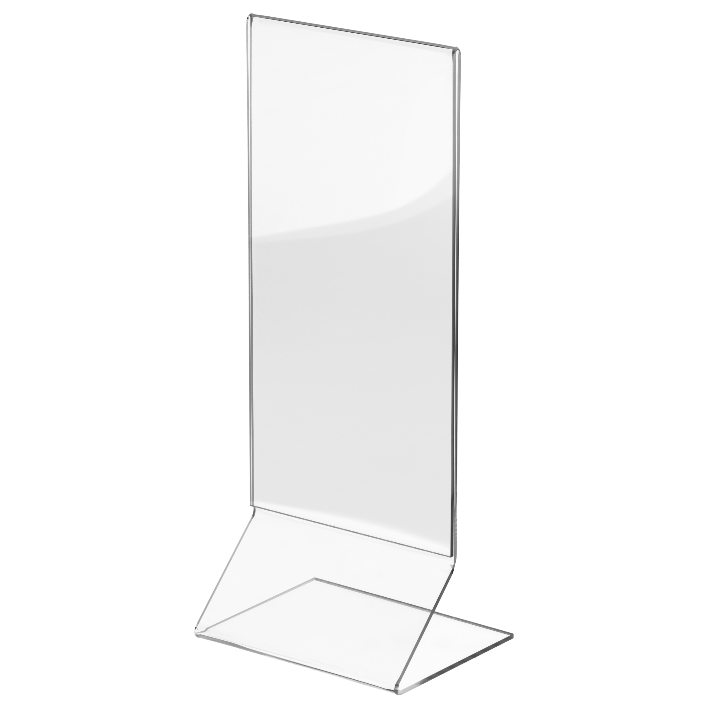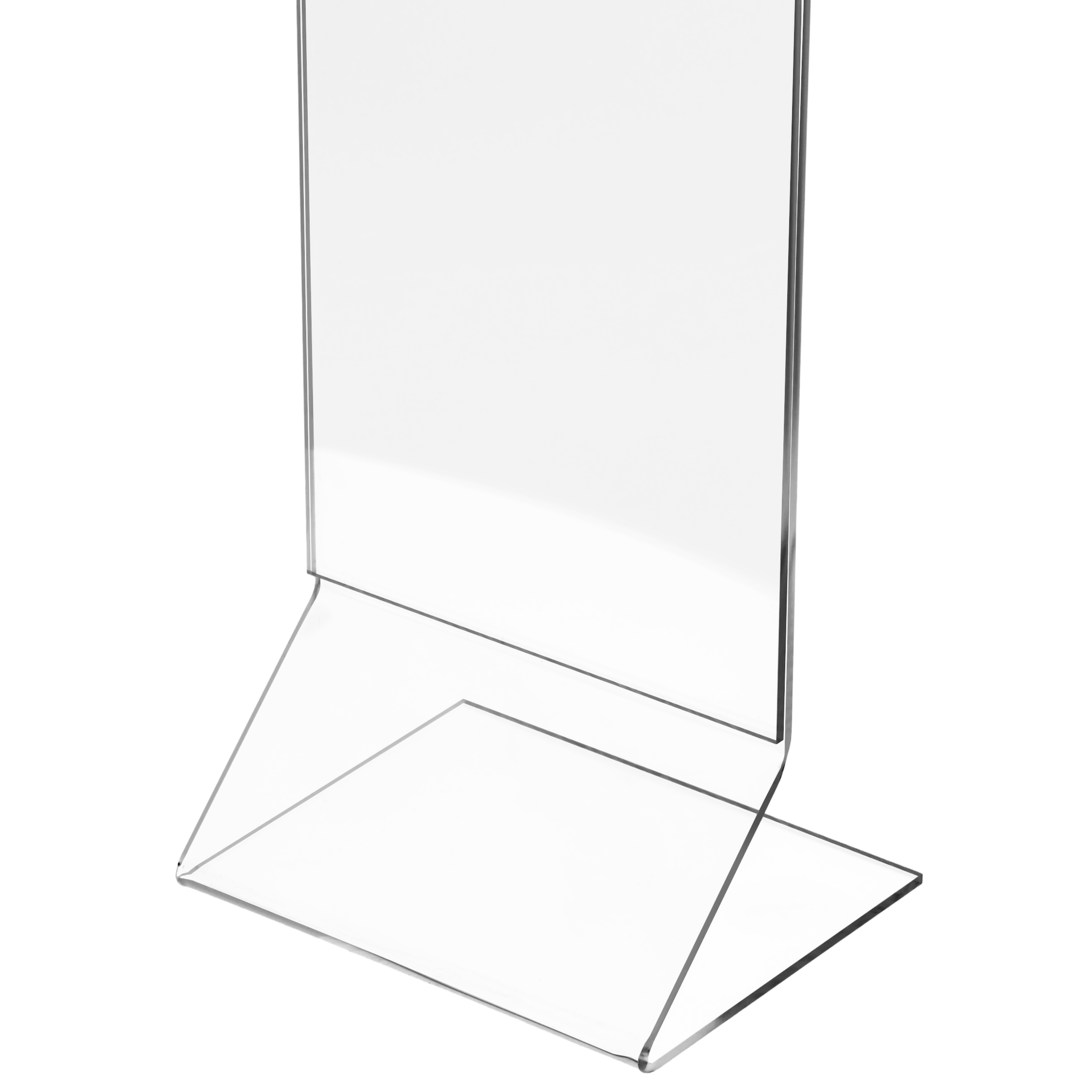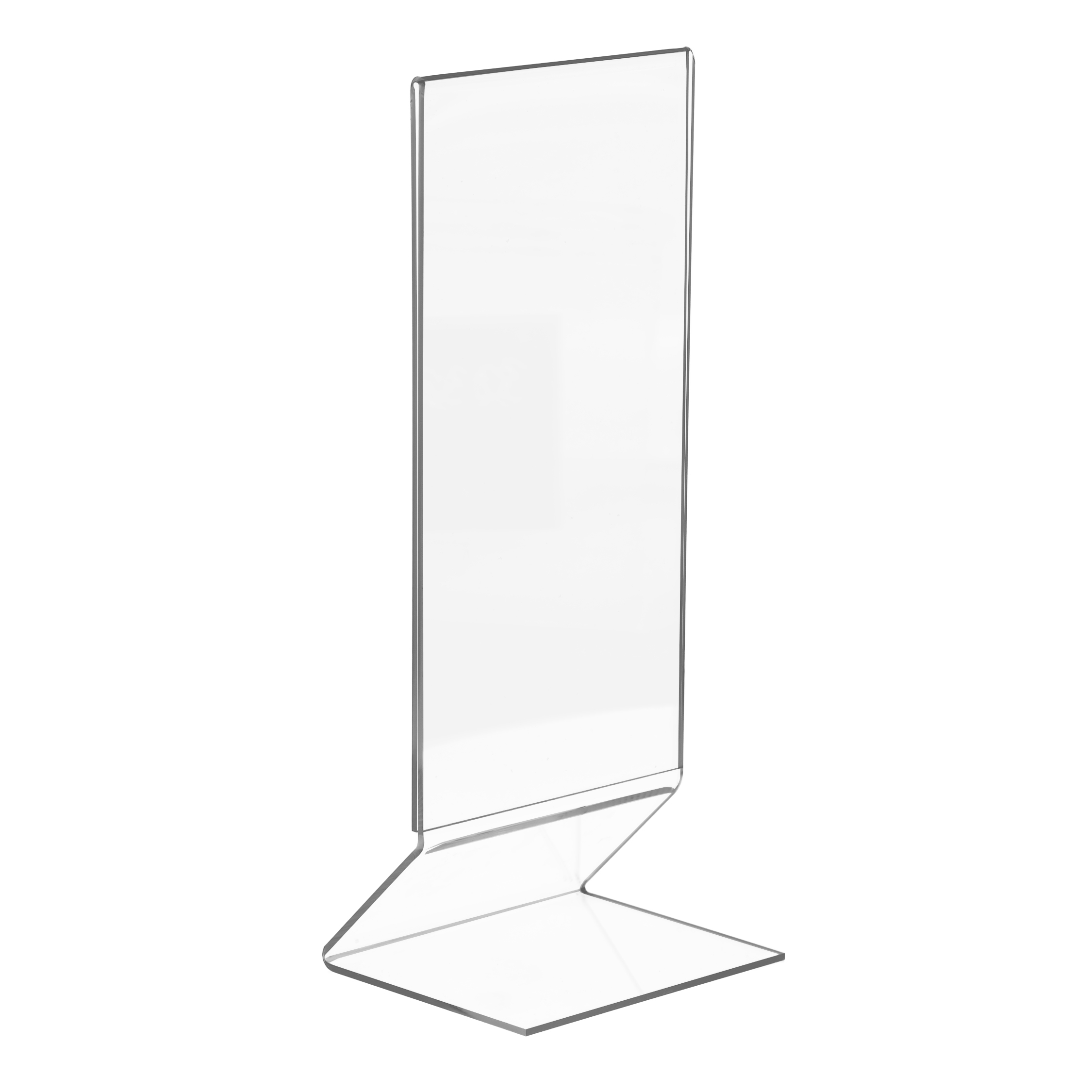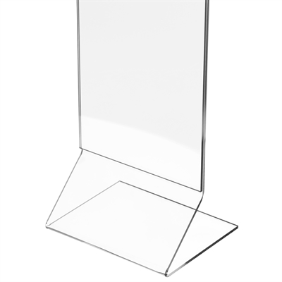 Et elegant og moderne akrylskilt med Z-formet fod, som giver et let og stabilt udtryk. Fremstillet i krystalklar akryl, der fremhæver dit budskab med professionel præcision. Perfekt til menuer, priser og informationer på borde, skranker eller diske.