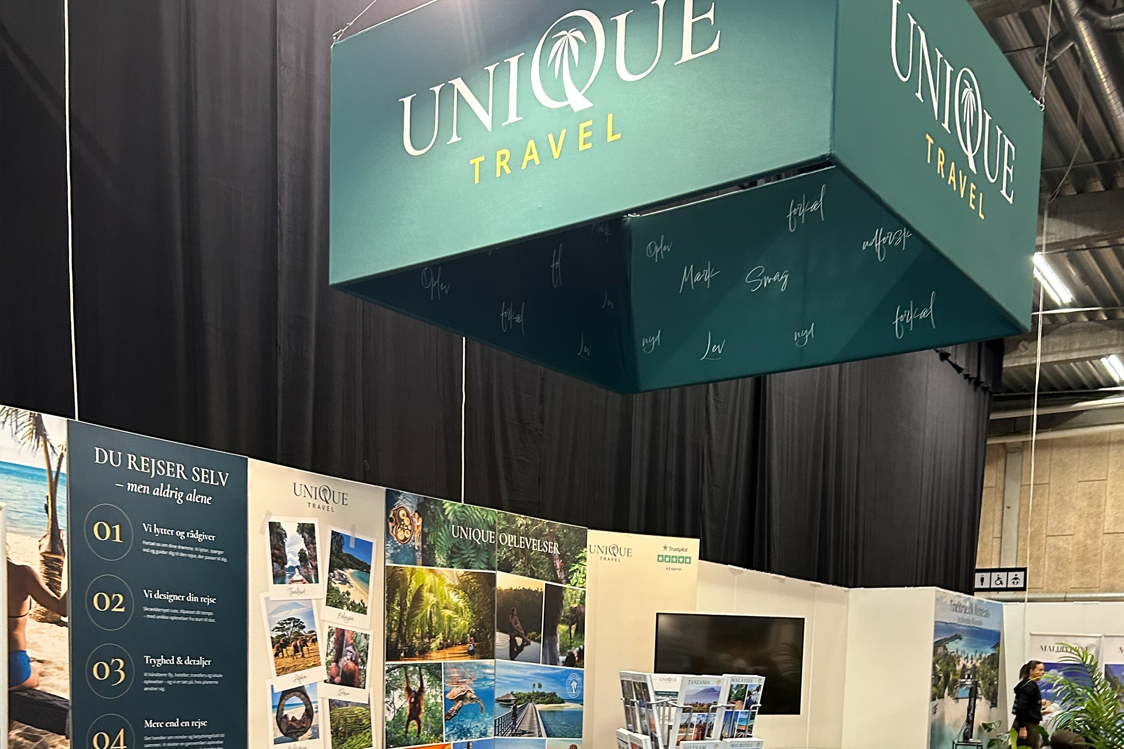 Ideel til brug ved messer, udstillinger og arrangementer. Løft dit budskab til nye højder med et Zipper loftbanner!
